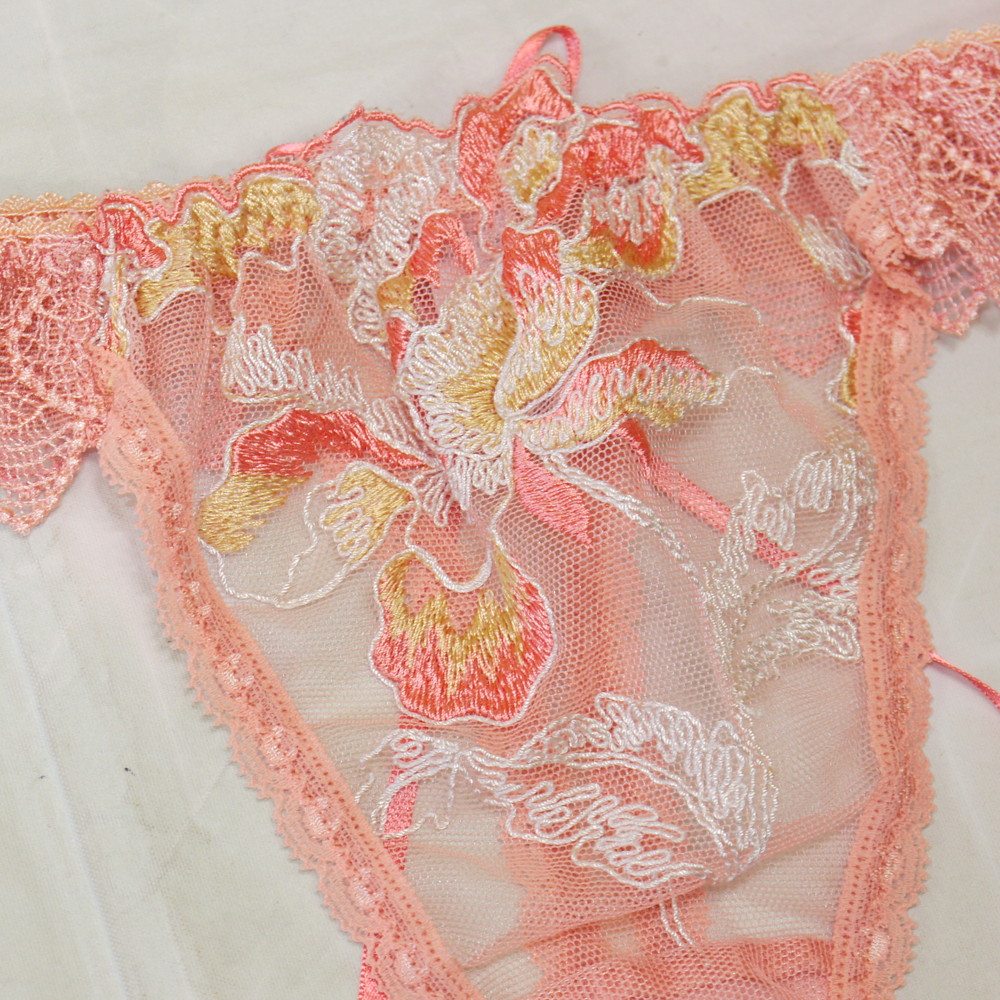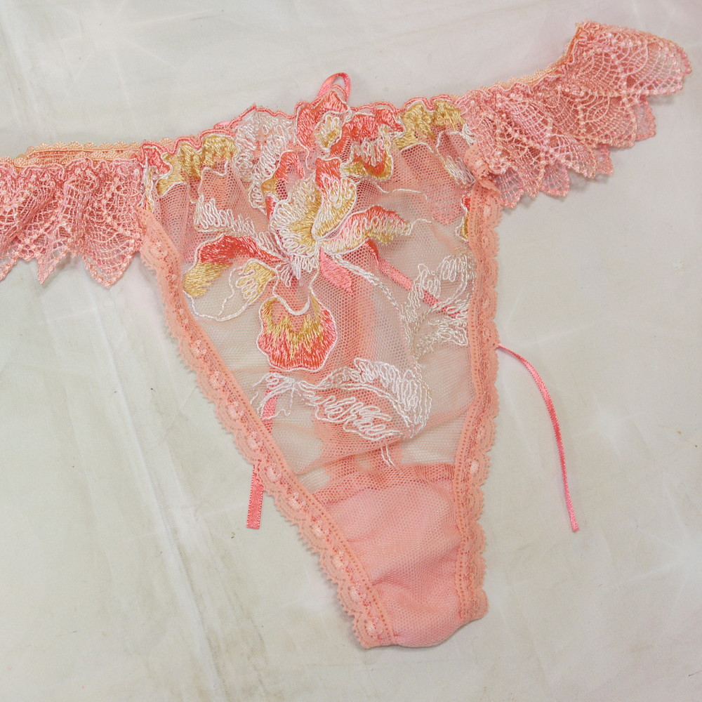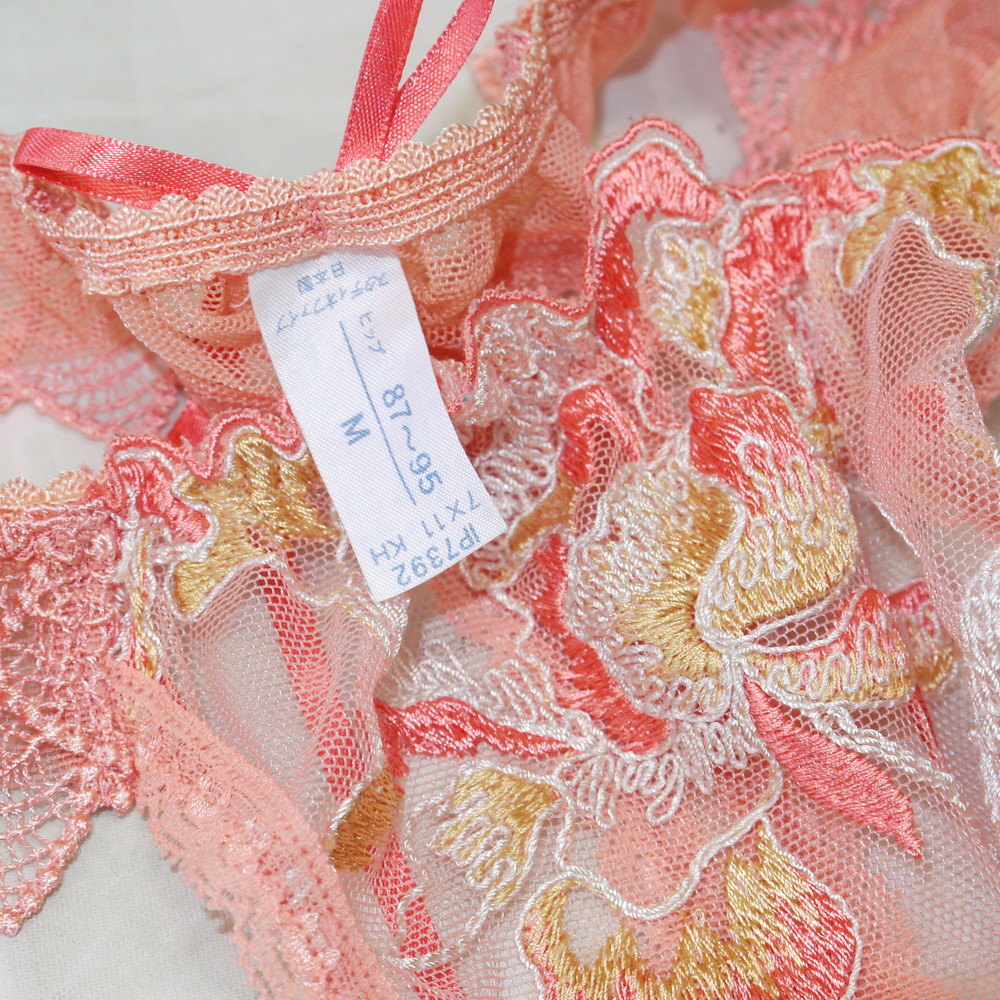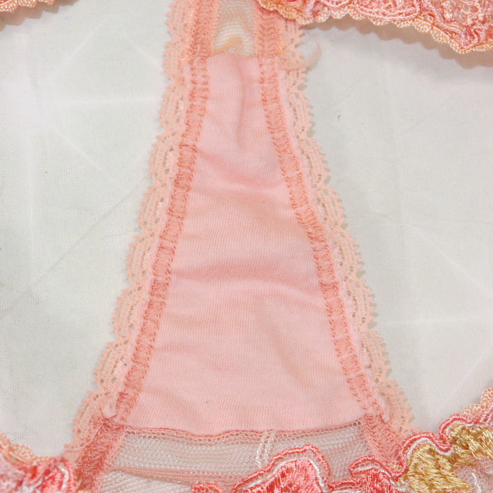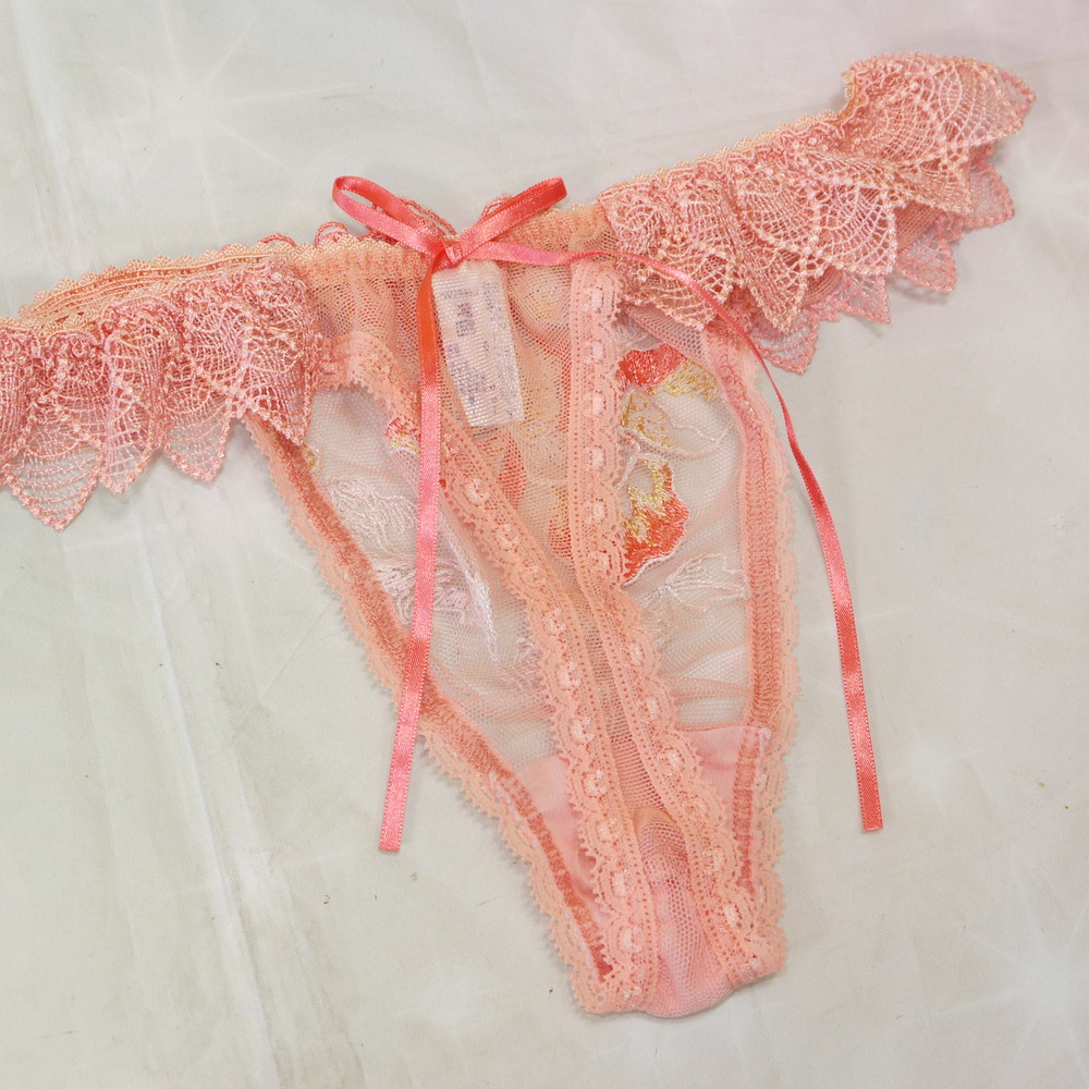 【Bランク/新古美品】スタディオファイブ 92G:Mサイズ ★ 大人可愛いサーモン×花レース フロント透SEXY 痴女感溢れるTショーツ