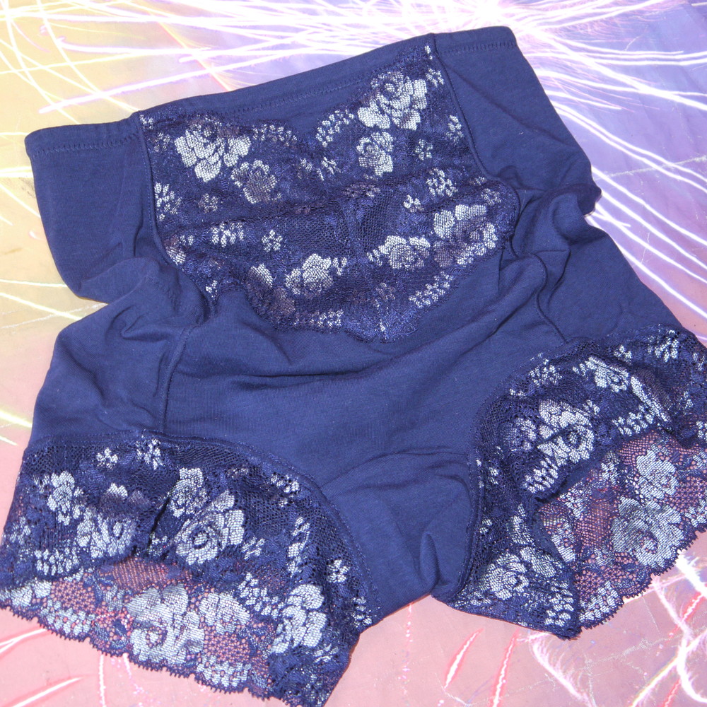 【Bランク/新古美品】福助:Lサイズ ★ 大人ネイビー 花レース ショートガードル