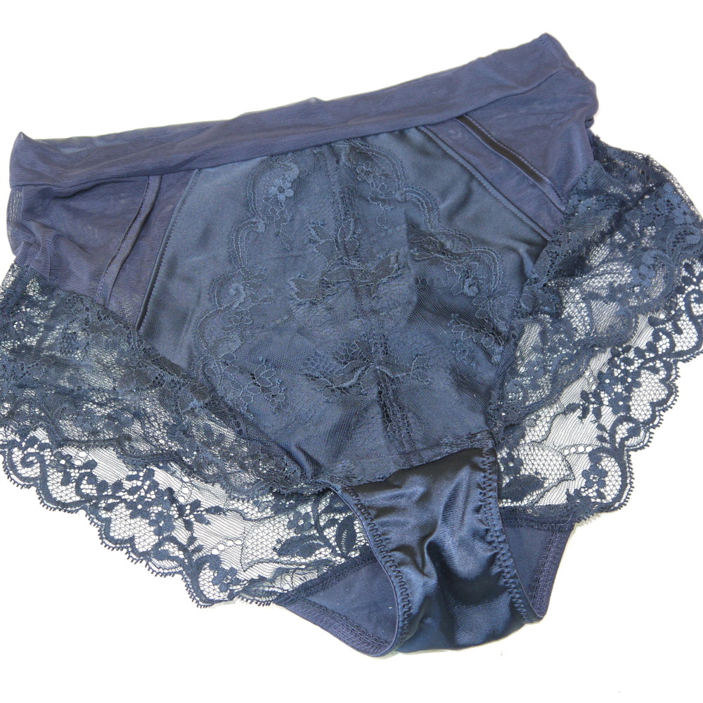 【BCランク/43ー】パルファージュ:Lサイズ ★ 濃紺 裾レース マダム系ショーツ