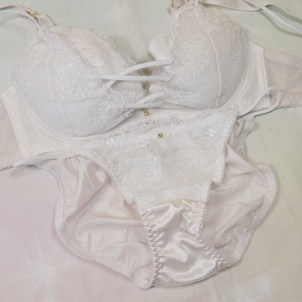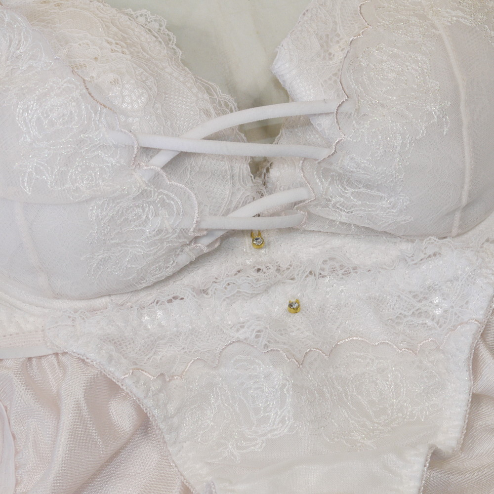 【BCランク/K43ー】美匠:E70*90 Mサイズ ★ 純粋感のライトピンク×白薔薇 甘とろ感サテン むっちり巨乳デカブラ PBセット