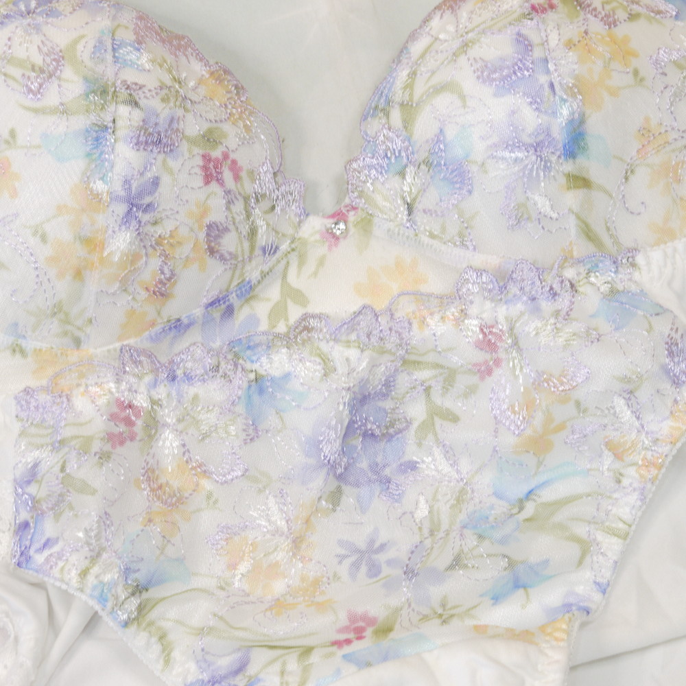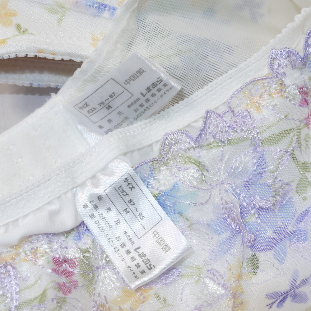 【BCランク/K43ー】しまむら:M(BCカップ程) Mサイズ ★ 大人で純粋系の白下着 春を飾る花刺繍 PBセット