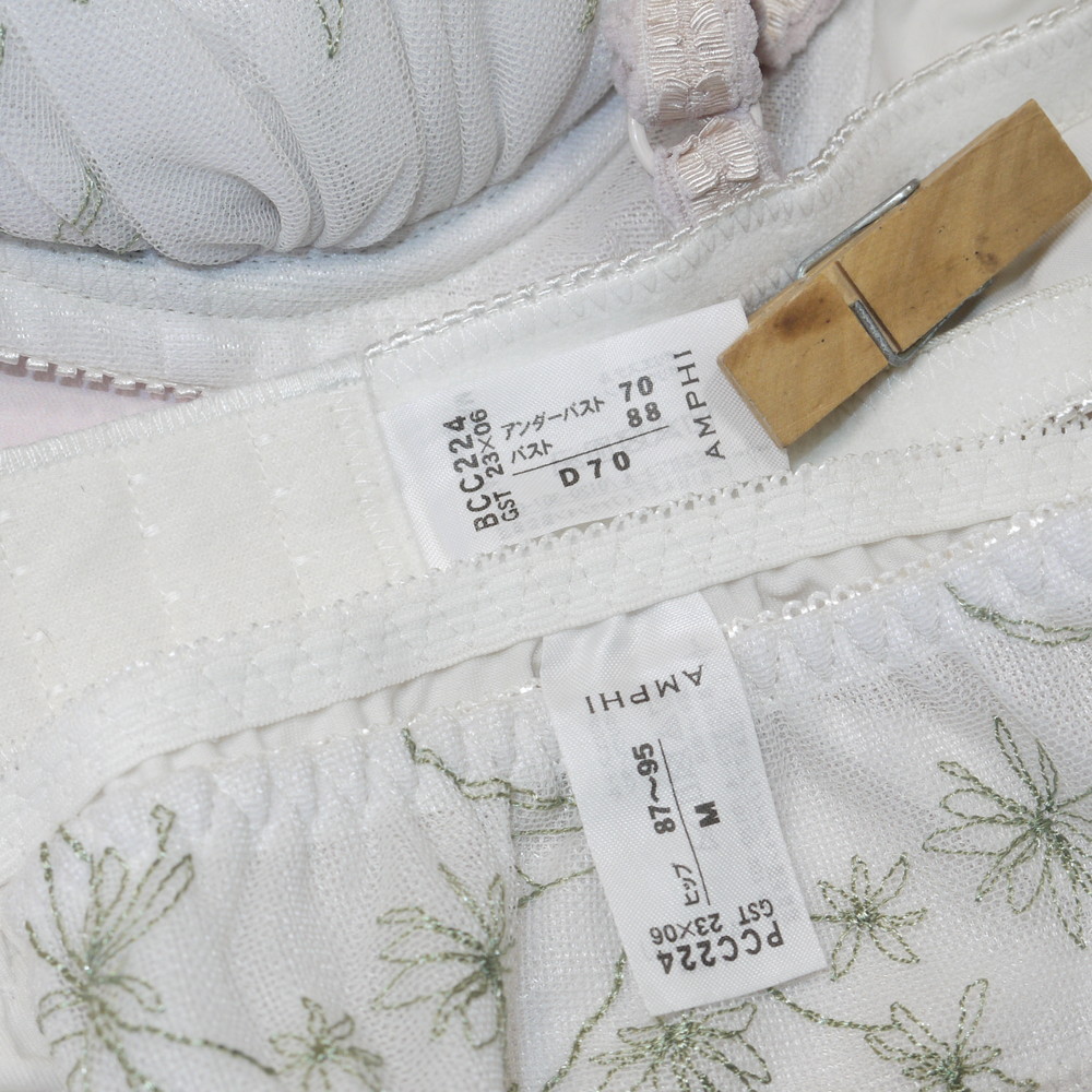 【BCランク/K43ー】ワコール:D70*88 Mサイズ ★ AMPHI!清楚で純粋な白下着 花ブーケ PBセット