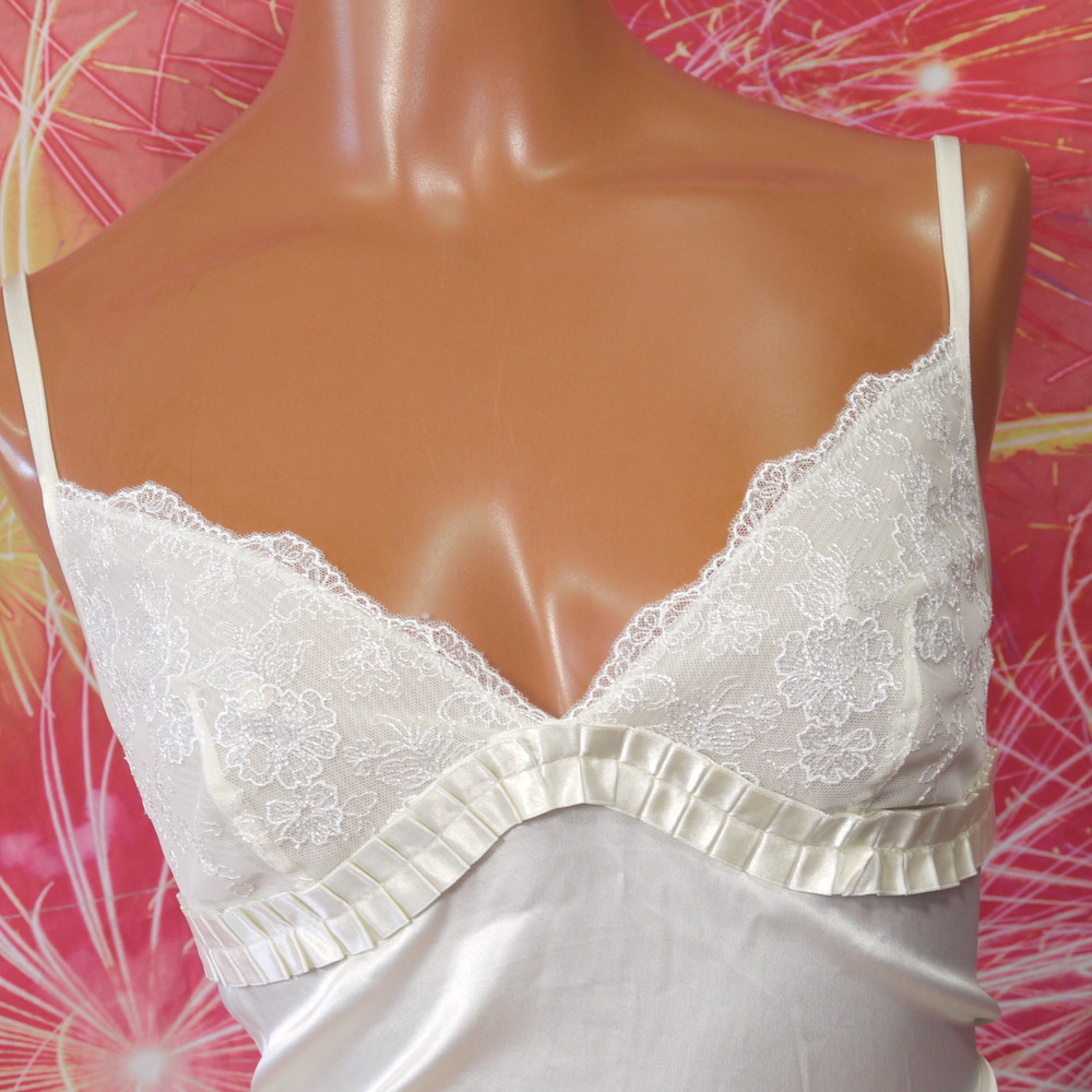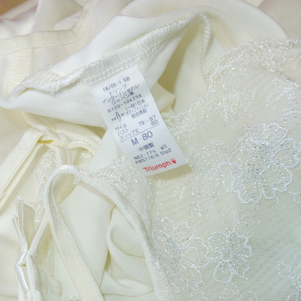 【Bランク/新古美品】トリンプ:M 丈80 ★ 純粋溢れるクリーム シルク調 上品パジャマ 薔薇×ラメ スリップ・:ネグ