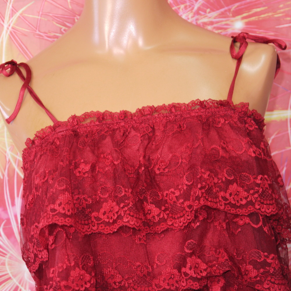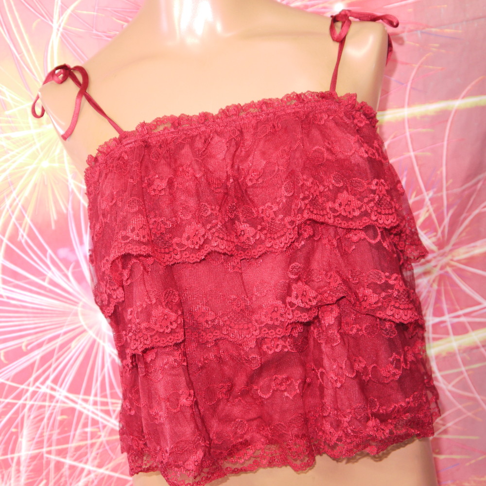 【ABランク/未使用?】ロリアン:M 丈40 ★ ブリッと可愛い大人赤 段々フリル 短キャミ