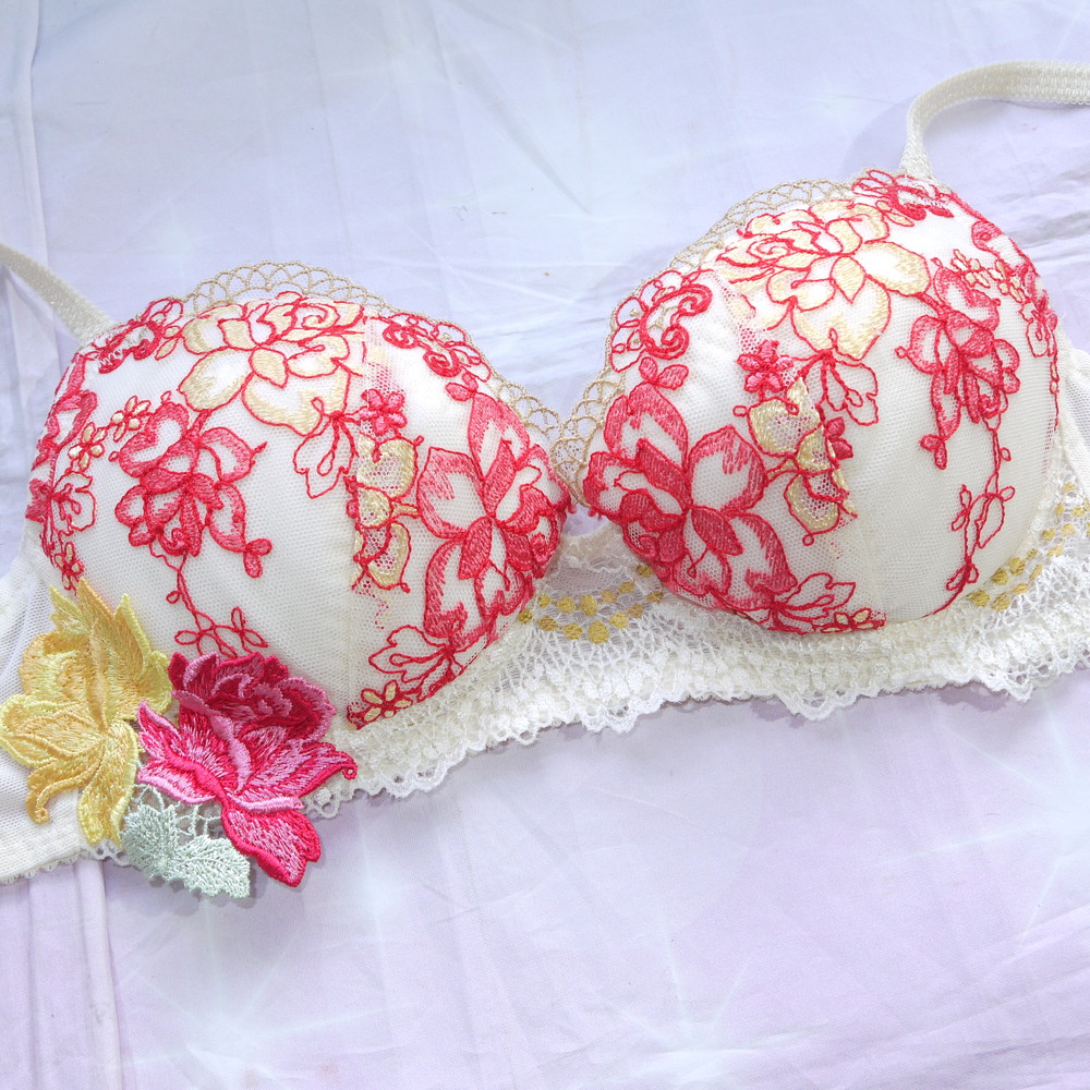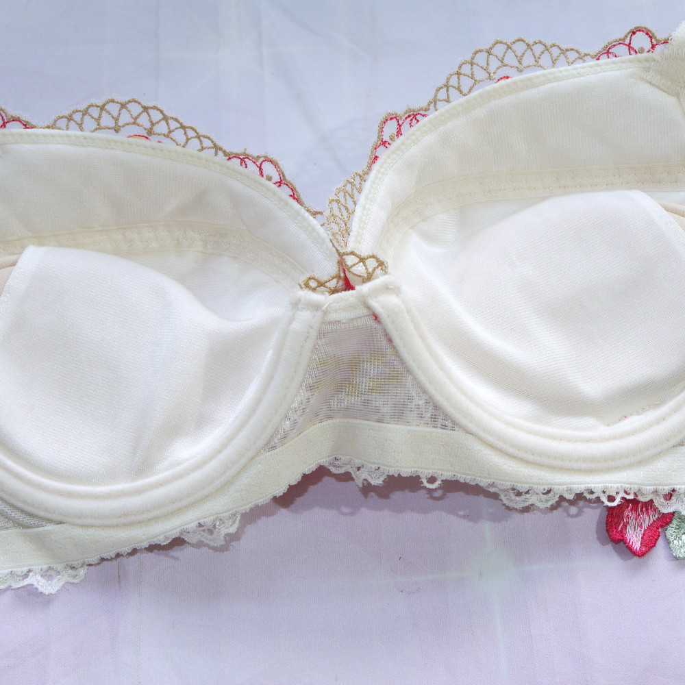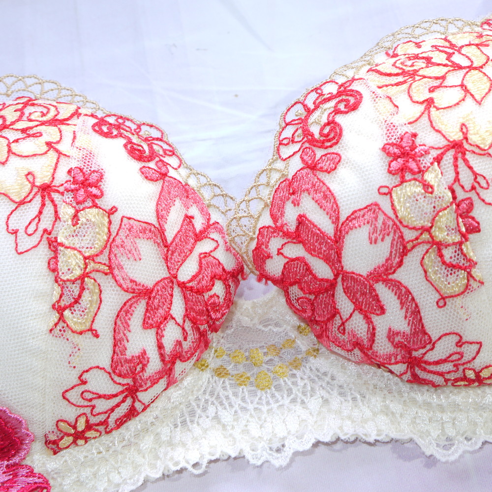 【ABランク/未使用?】ワコール:C70*85 ★ Lge!豪華で華やかな刺繍×アップリケ クリーム ブラ