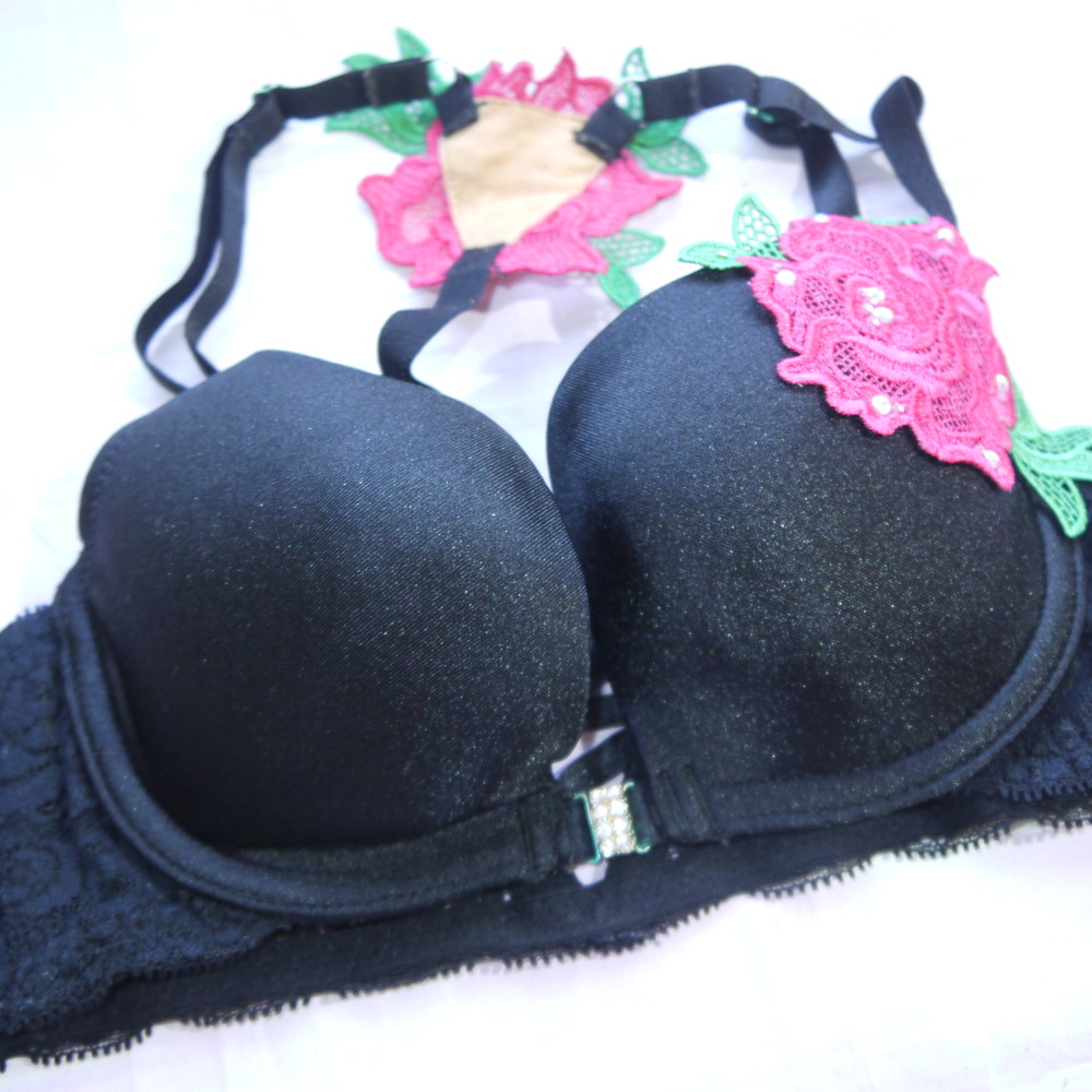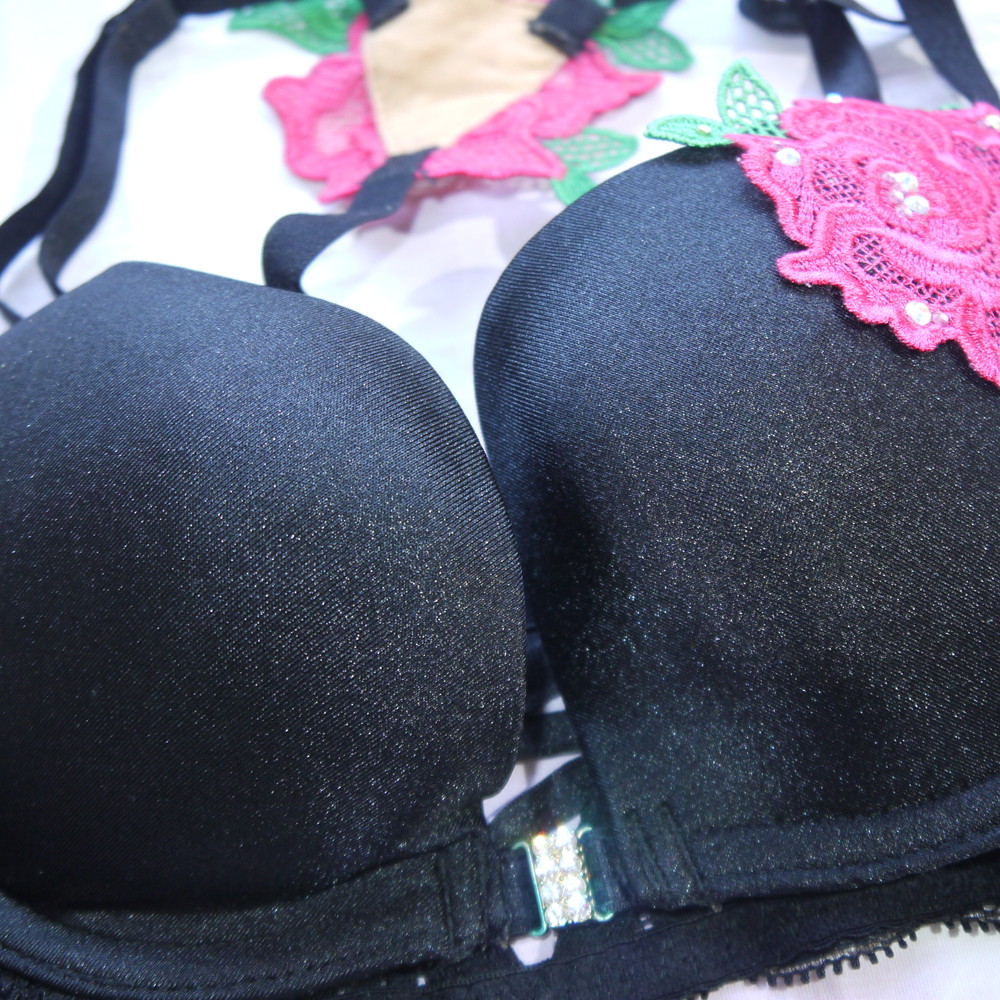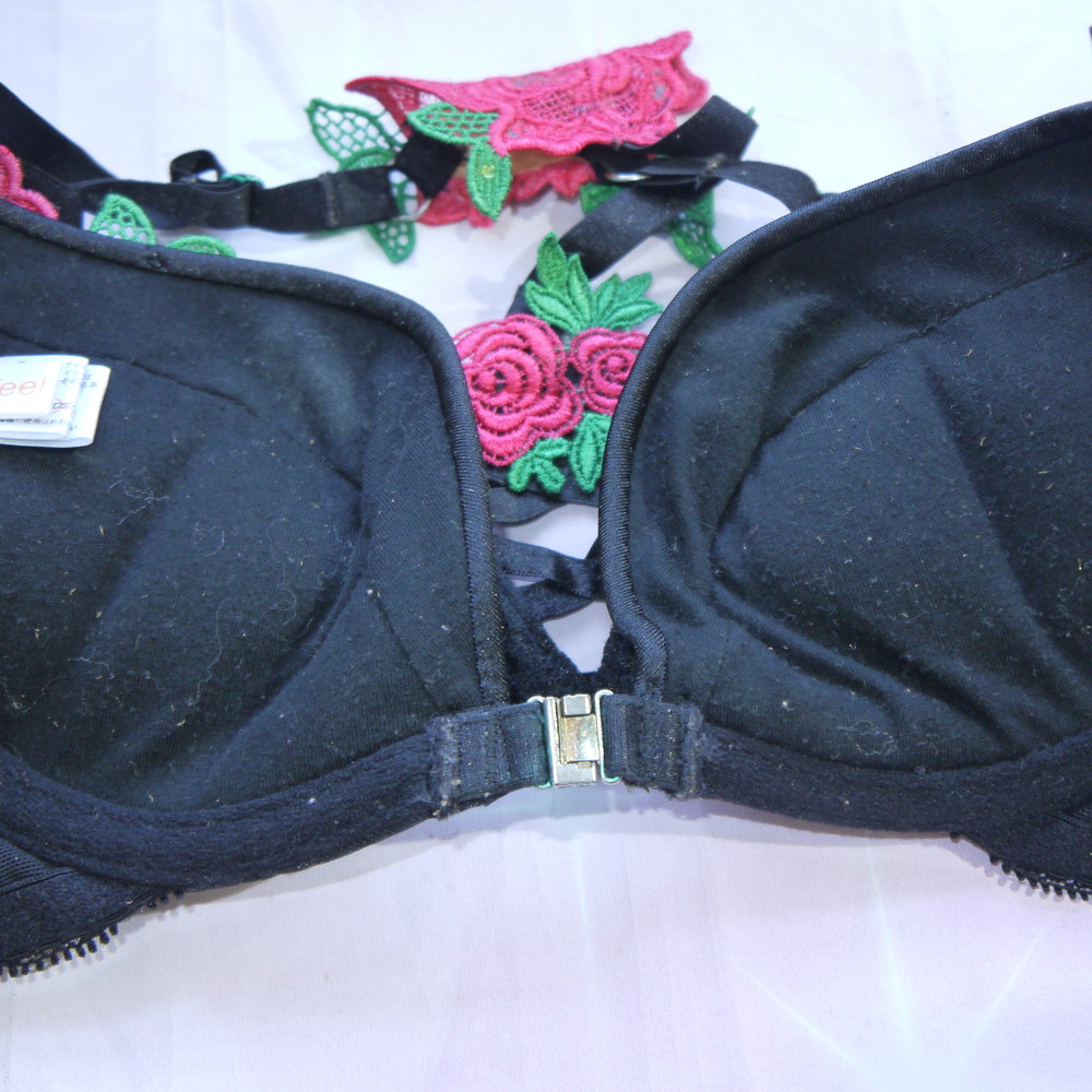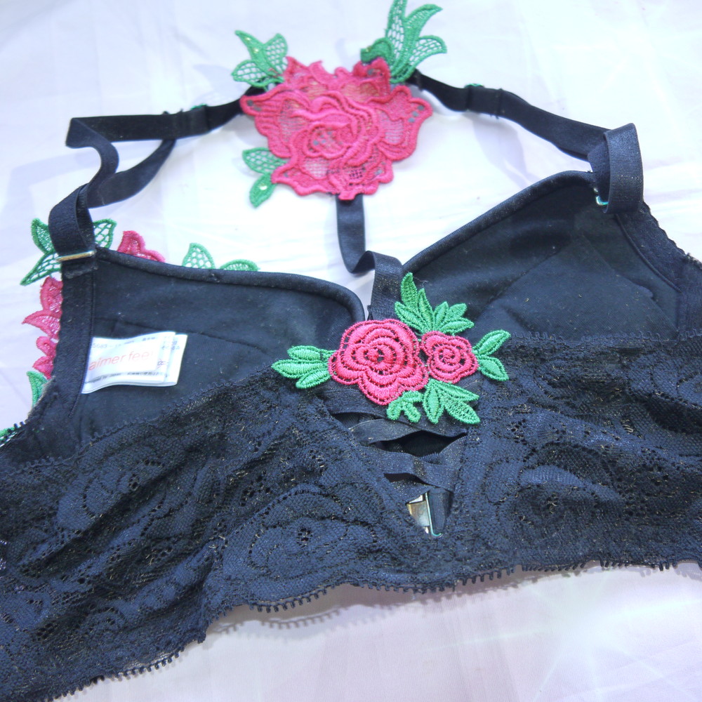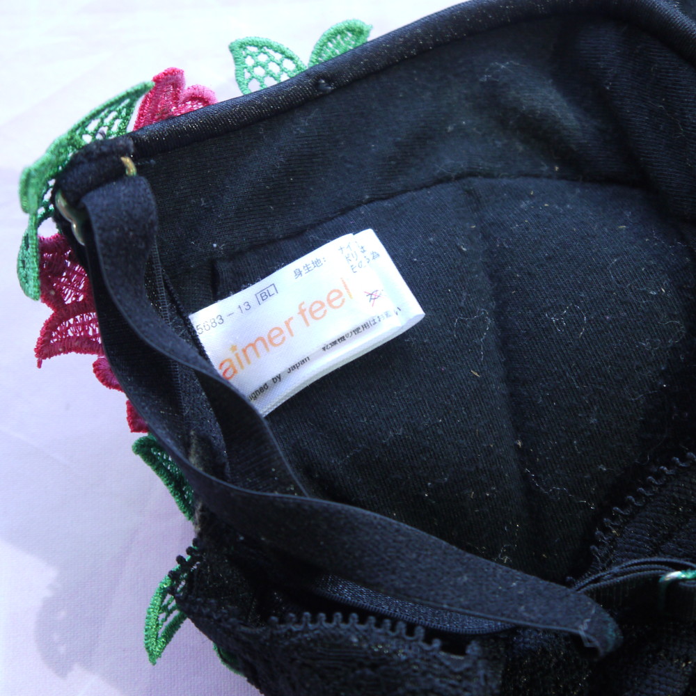 【BCランク/B43】エメフィール:B70*83 ★ 廃盤希少!ギャル全盛期の黒×薔薇アップリケ 背部Yバック ブラ