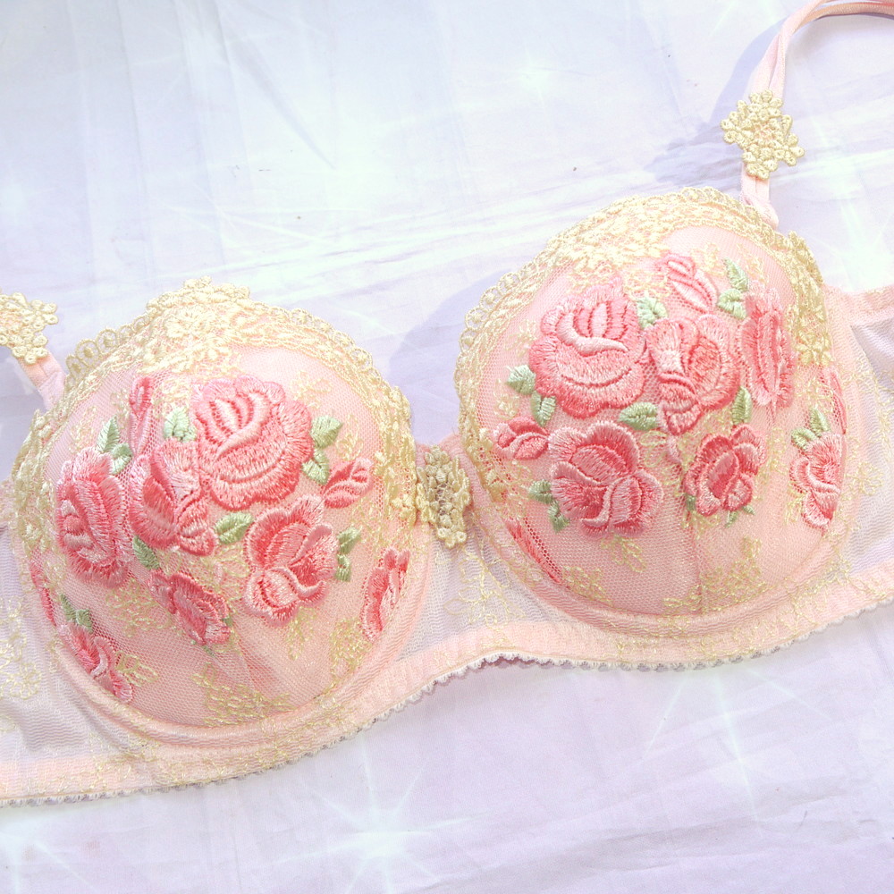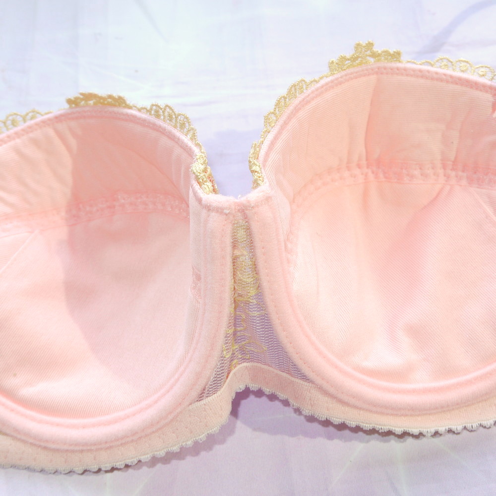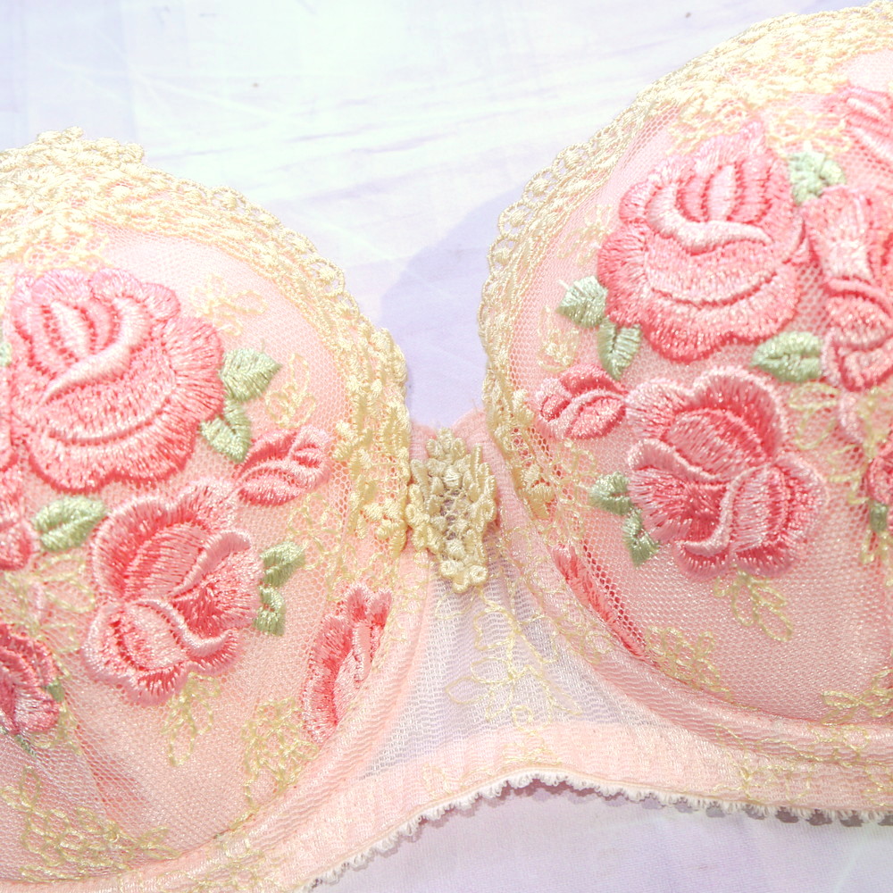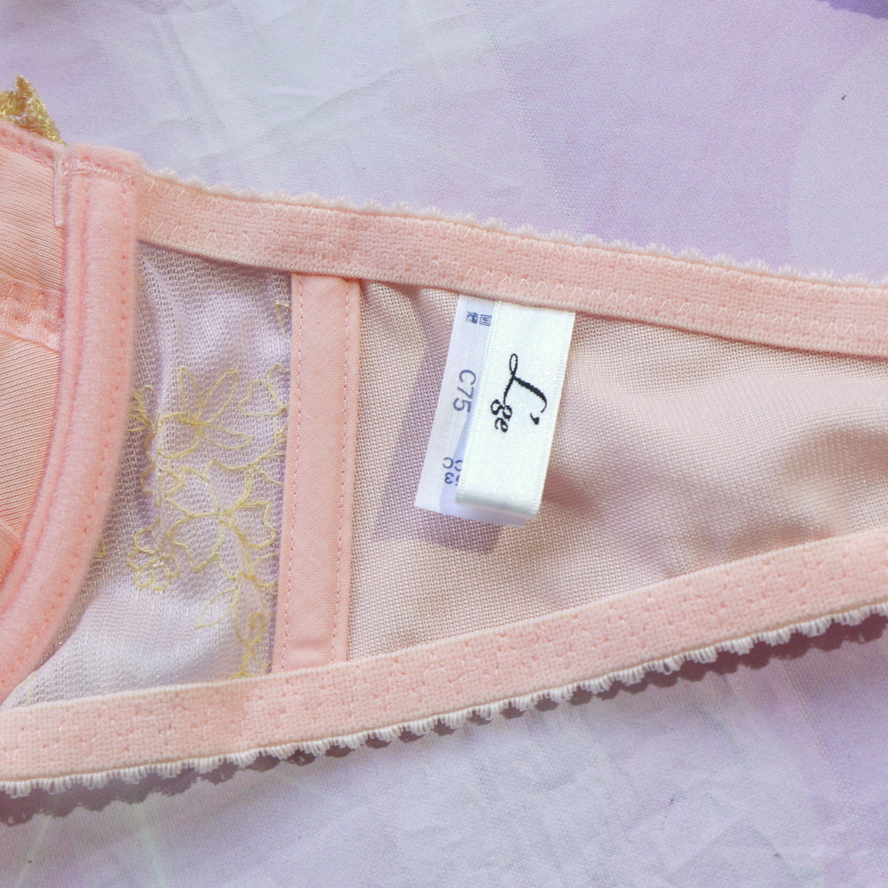 【ABランク/未使用?】ワコール:C75*90 ★ Lge!お嬢様感のサーモン×厚手薔薇 美胸ブラ