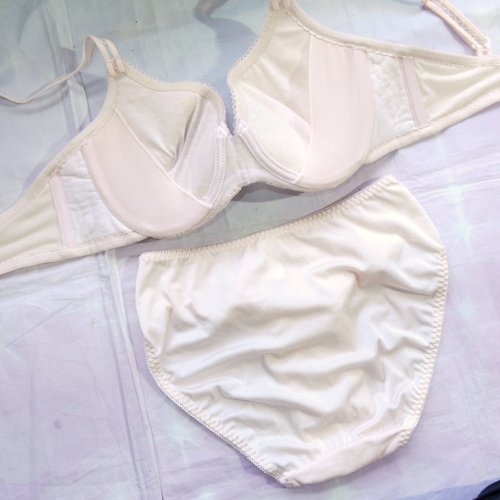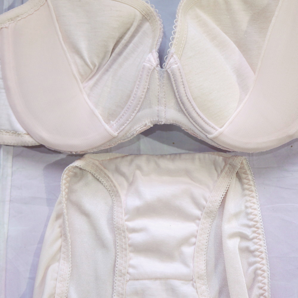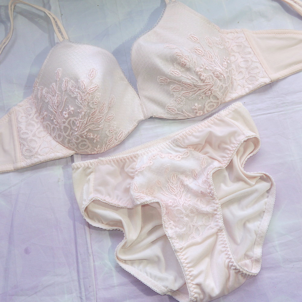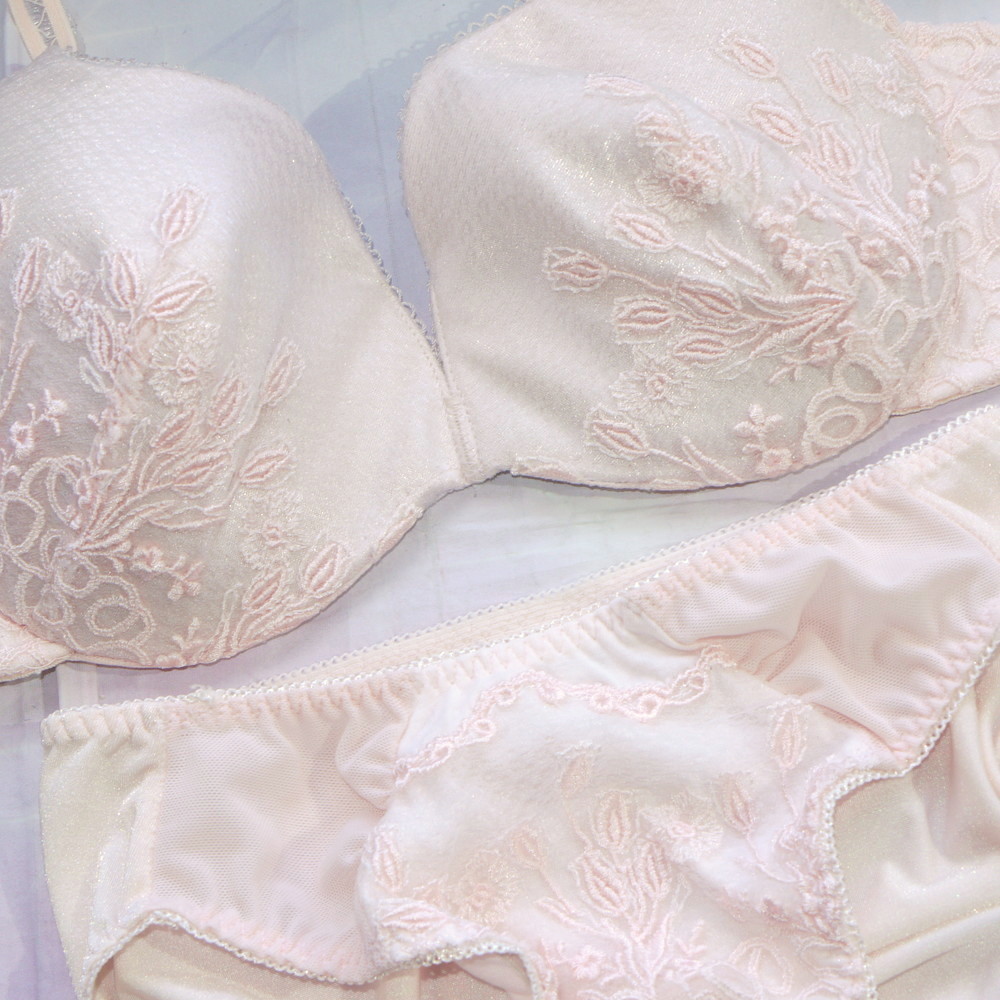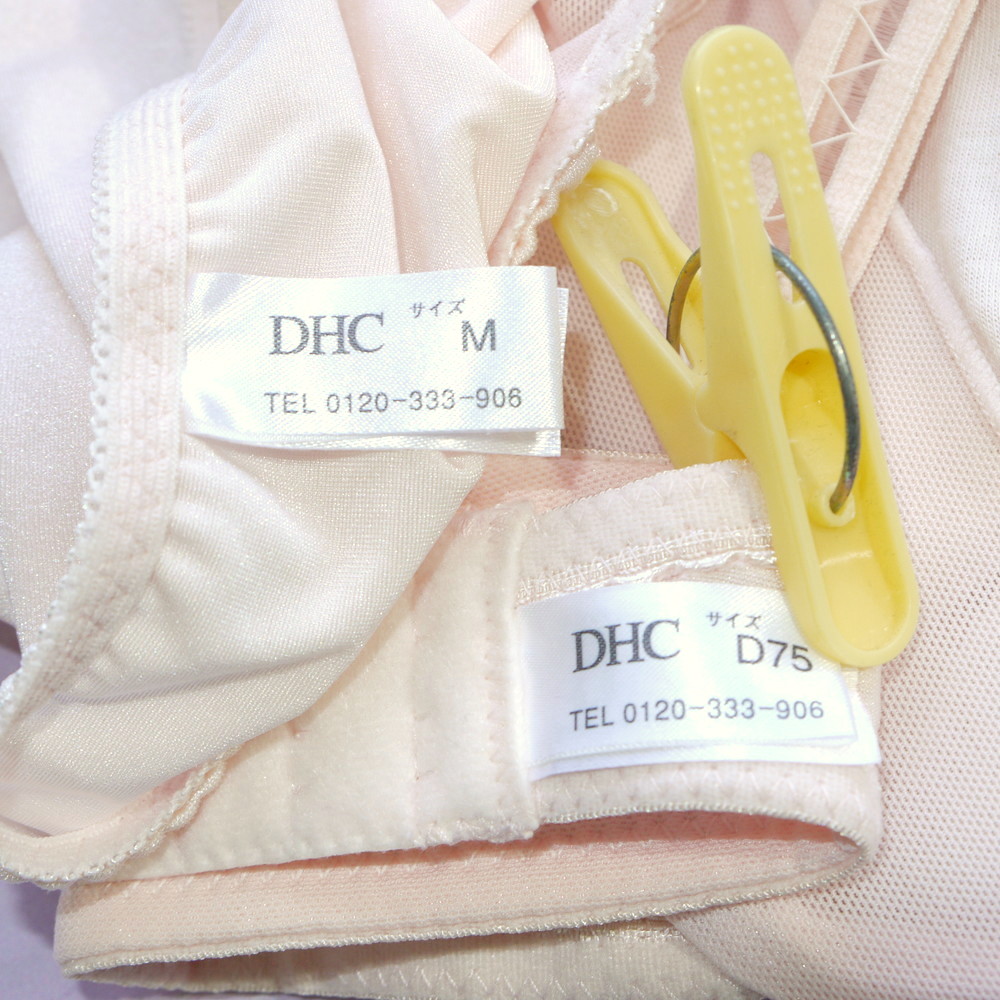 【Bランク/新古美品】DHC:D75 Mサイズ ★ 清楚感のライトピンク リーフ刺繍 シルク調の高級感 PBセット
