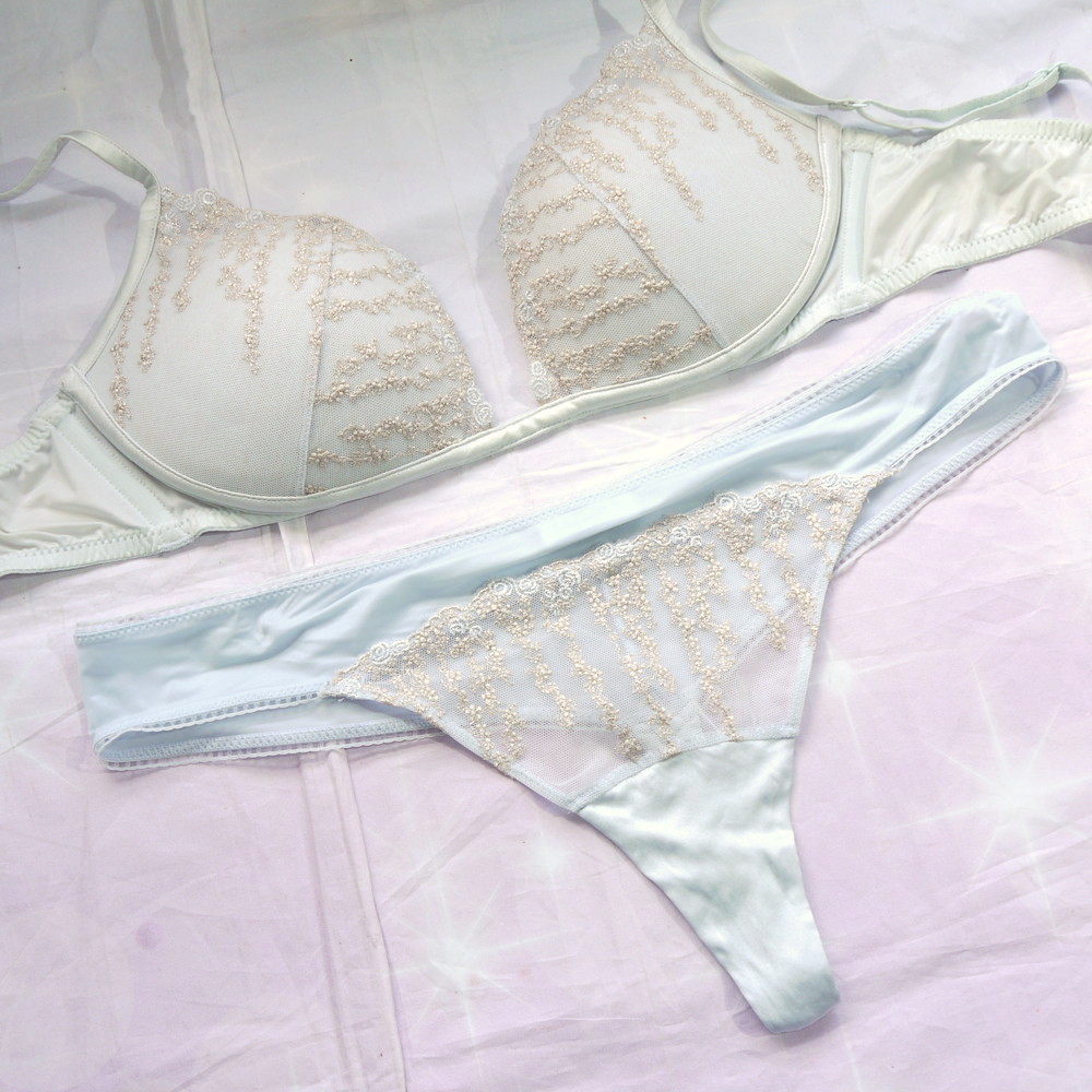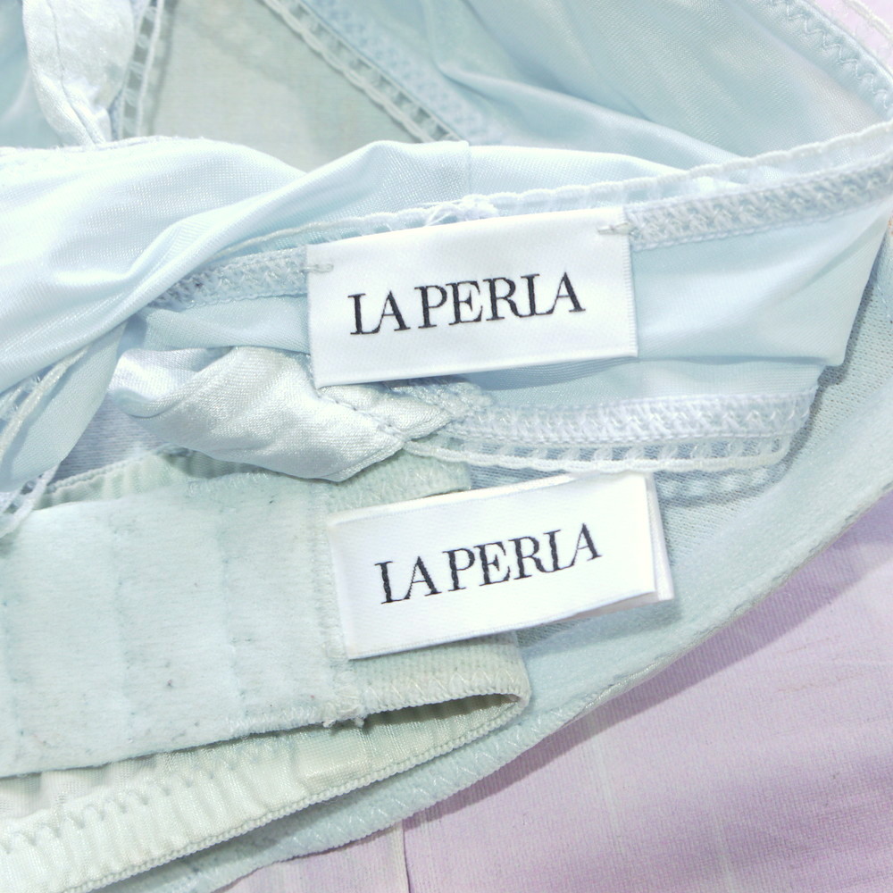 【BCランク/B43ー】LA PERLA:C75 L-LLサイズ程度 ★ 透き通るようなライトブルー 金小花 T 最上級ランジェ PBセット