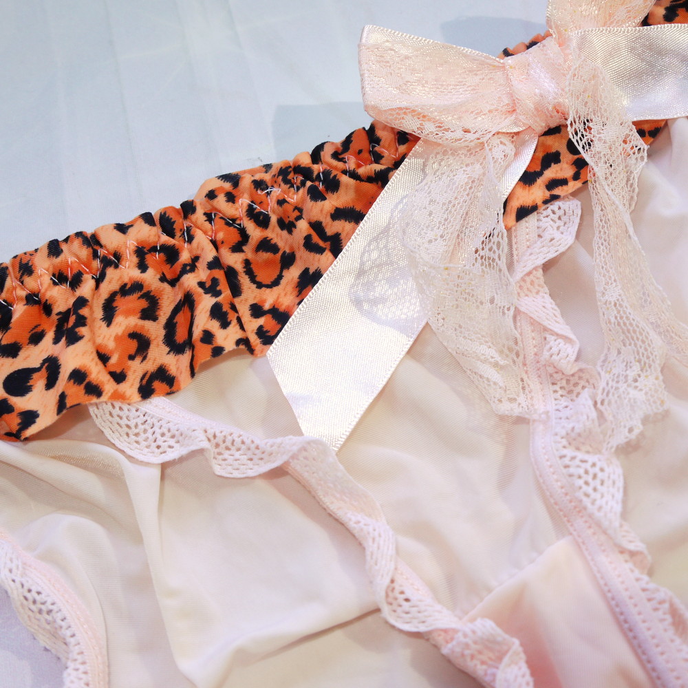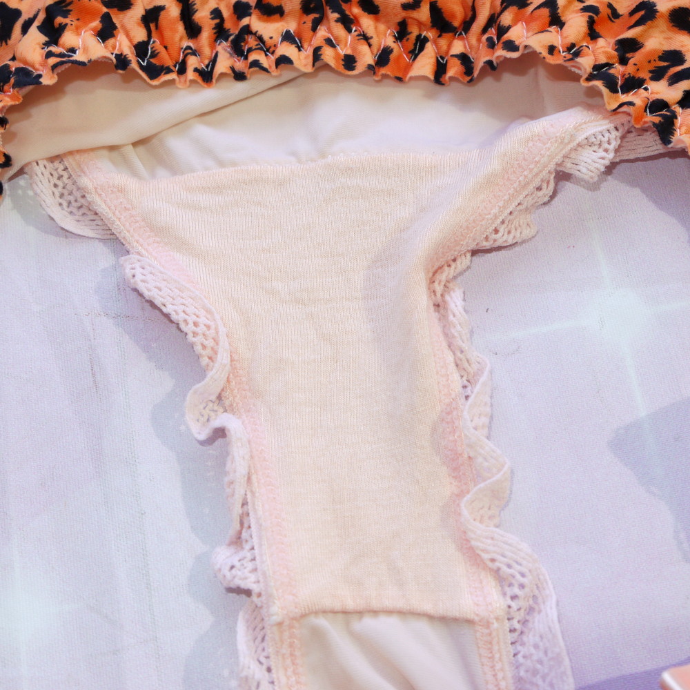 【Bランク/新古美品】MLサイズ程度 ★ やんわりオレンジ×豹!透けるギャル系パンティ