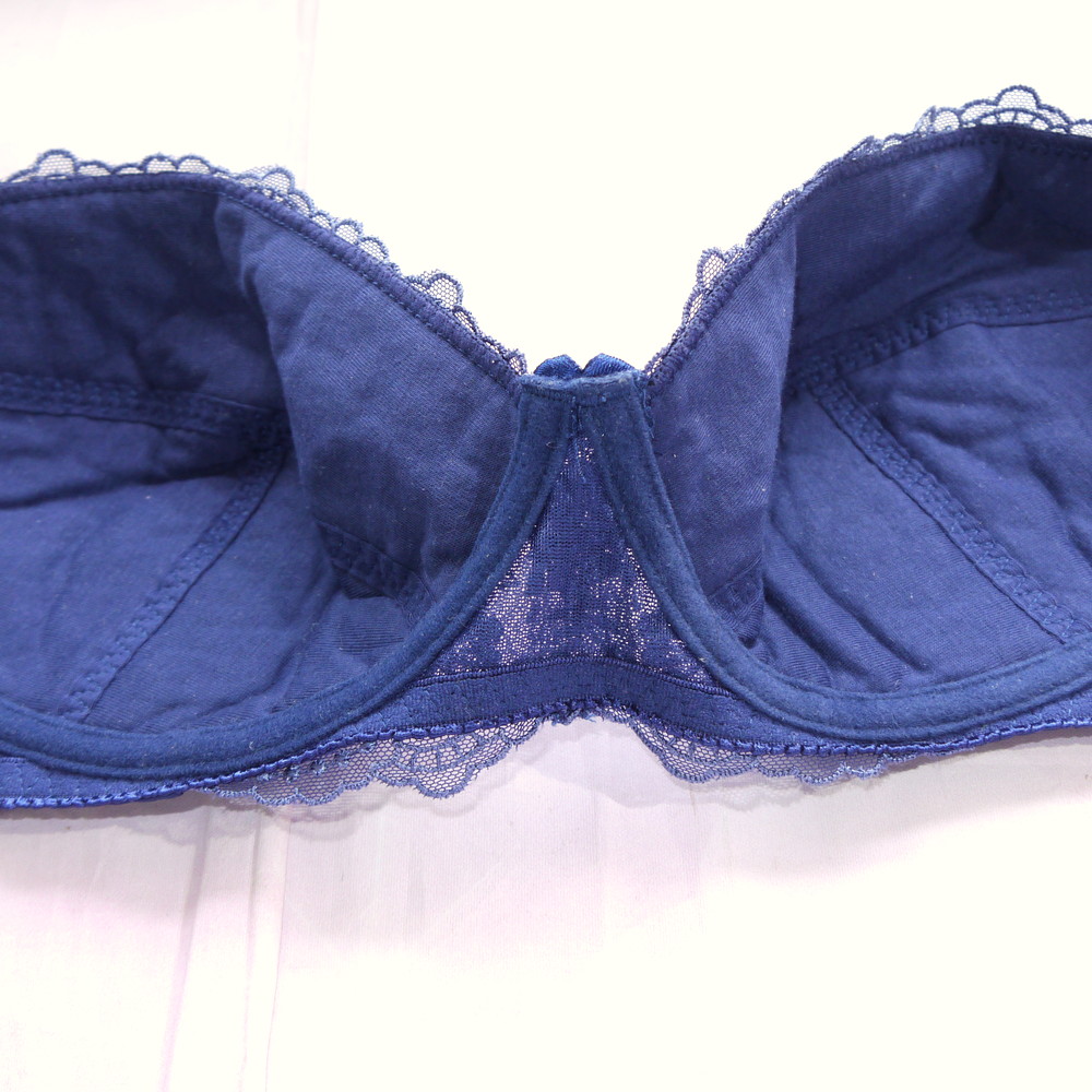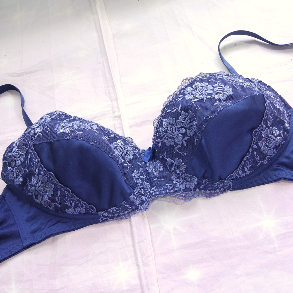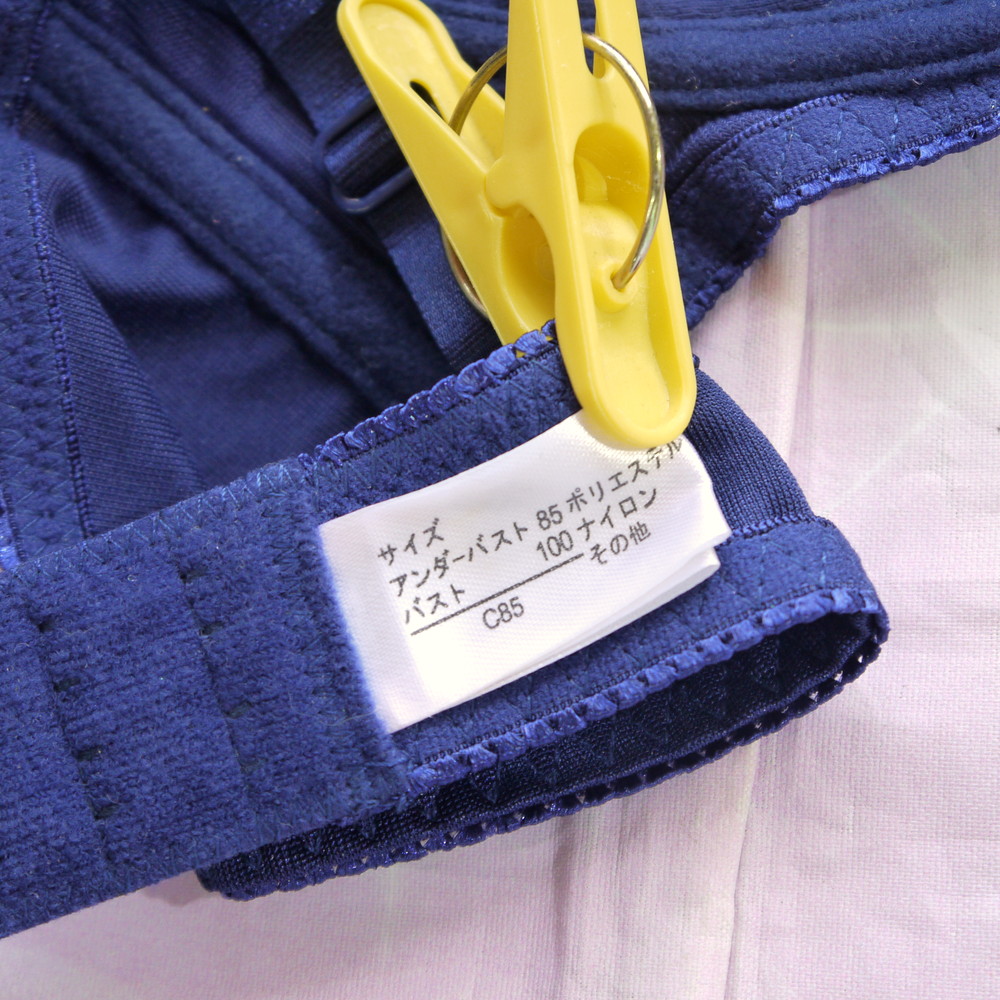 【Bランク/新古美品】ニッセン:C85*100 ★ 奥様系の落着きネイビー×花刺繍 メガ85 デカブラ