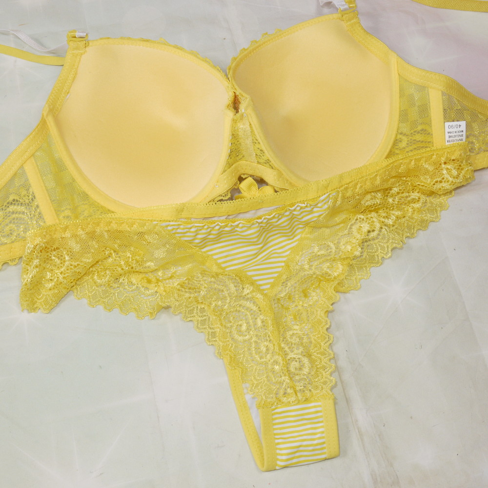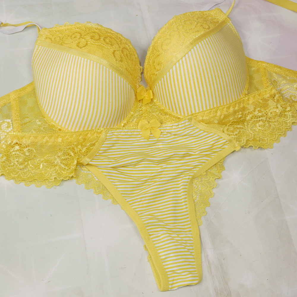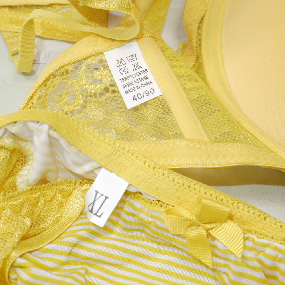 【Aランク/未使用】40/90(EFカップ程) XLサイズ ★ 小麦ギャル系の夏イエロー しましま T PBセット 巨乳グラマー