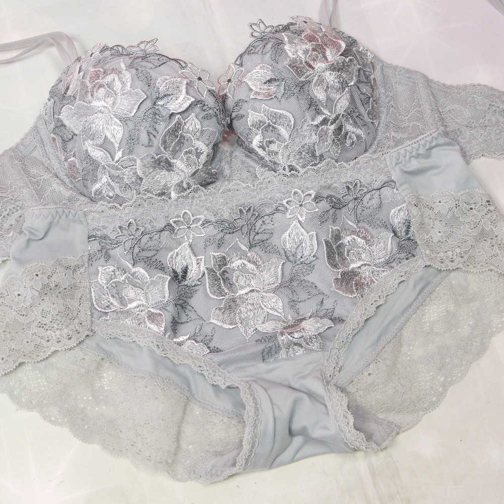【BCランク/K43】Dubleve:CDカップ程 Mサイズ ★ デューブルベ!高級感溢れる厚手薔薇×グレー PBセット