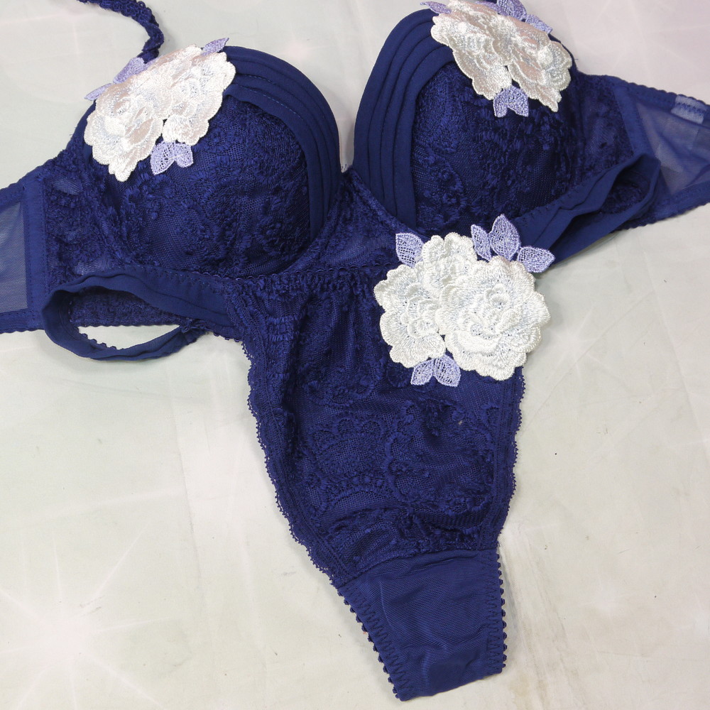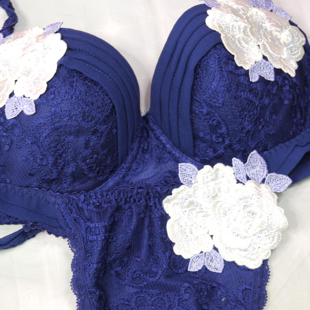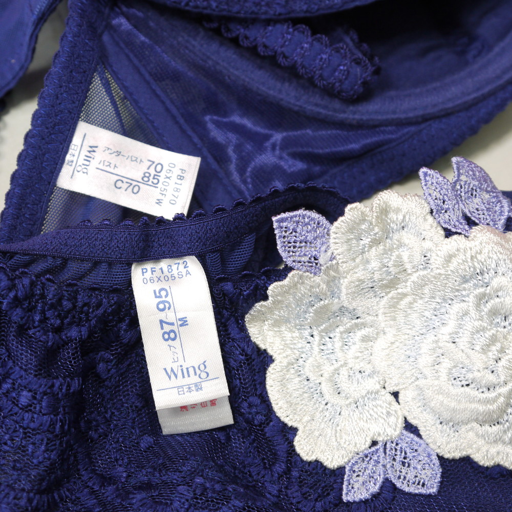 【Bランク/新古美品】Wing:C70*85 Mサイズ ★ レシアージュ!高級感のネイビー×白薔薇? T PBセット