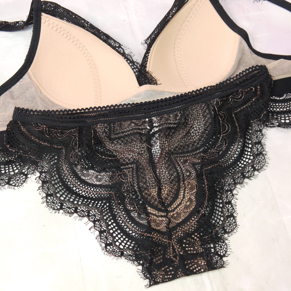 【Bランク/新古美品】ANNBRA:M(DEカップ程) Lサイズ ★ 妖艶感ブラック セレブ感溢れる金ラメ ハーフ PBセット