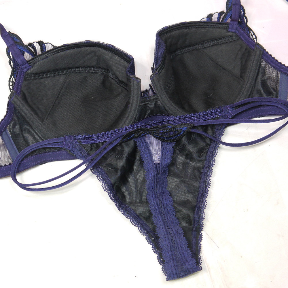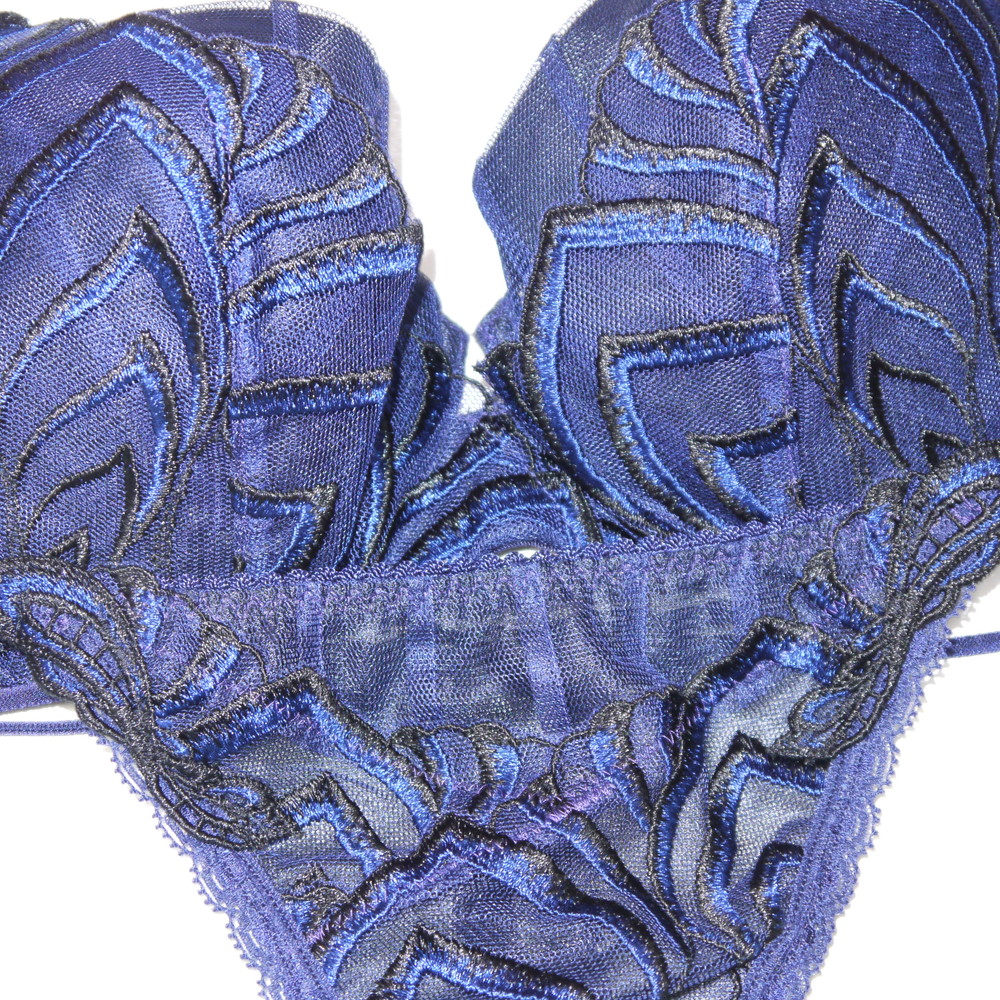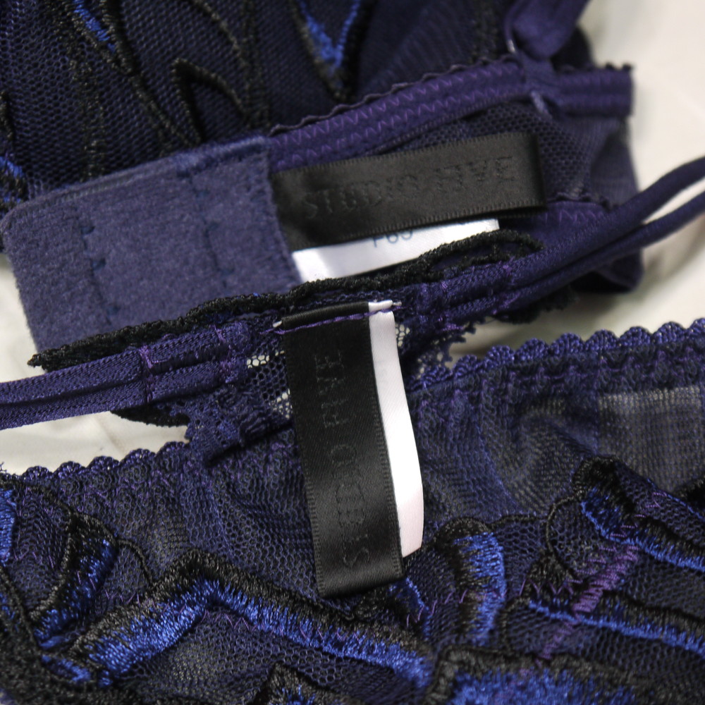 【BCランク/K43ー】スタディオファイブ 68G:F65*88 Mサイズ ★ 妖艶香るネイビー×リーフ調刺繍 爆乳デカブラ フロント透けSEXY T PBセット