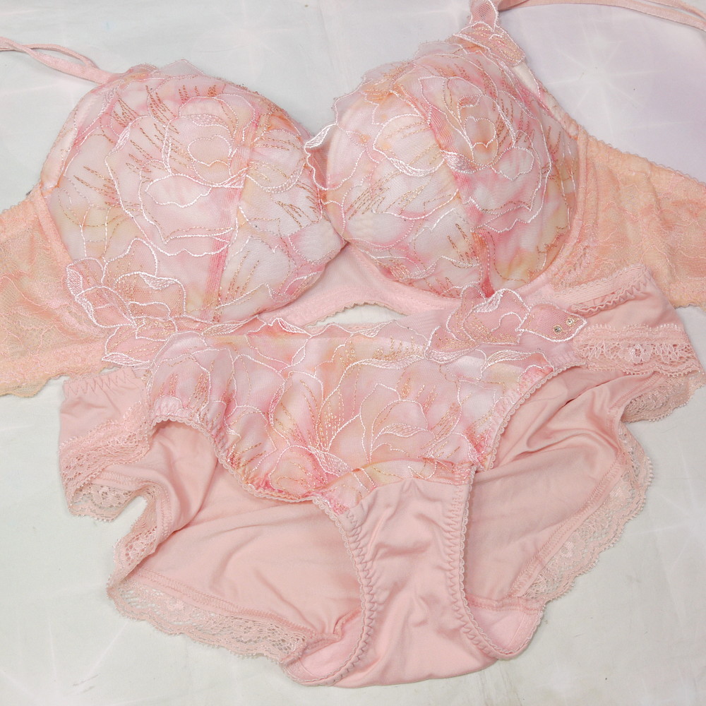 【BCランク】パルファージュ:E75*95 Lサイズ ★ 大人可愛い春サーモン×花弁レース刺繍 巨乳デカブラ PBセット