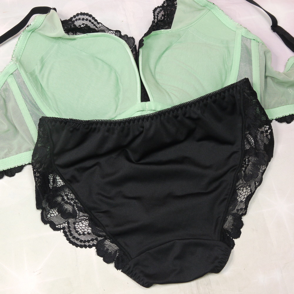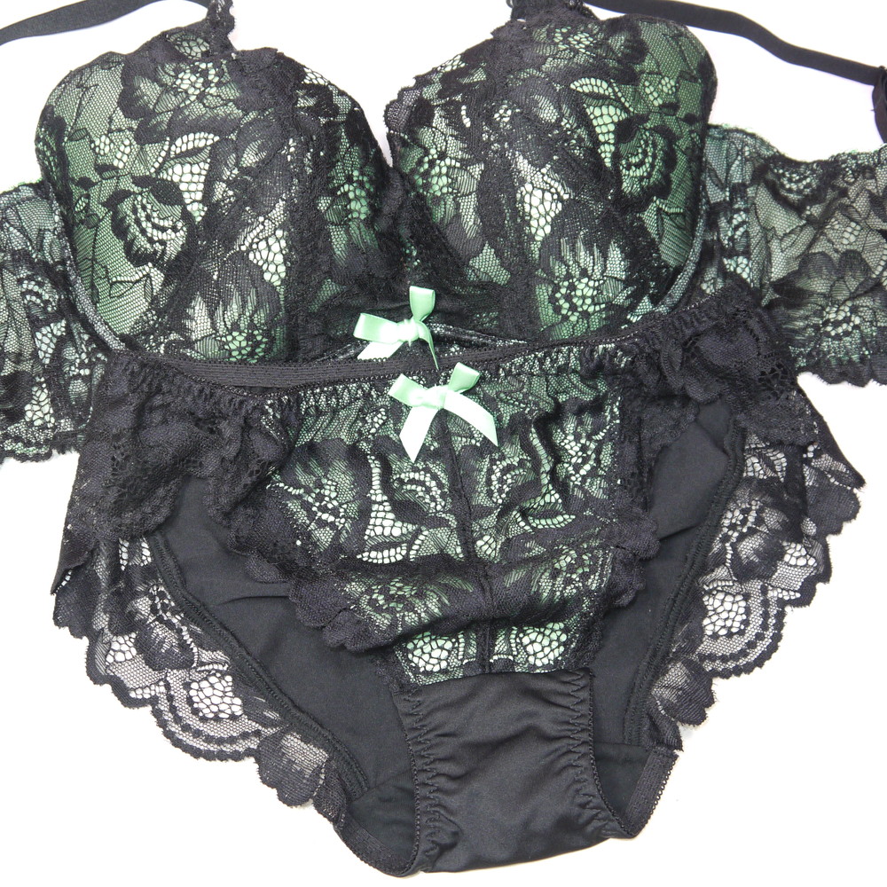 【Bランク/新古美品】エメフィール:E75*95 Lサイズ ★ リバイブ系の派手グリーン×黒レース 巨乳ギャル・キャバ系 PBセット