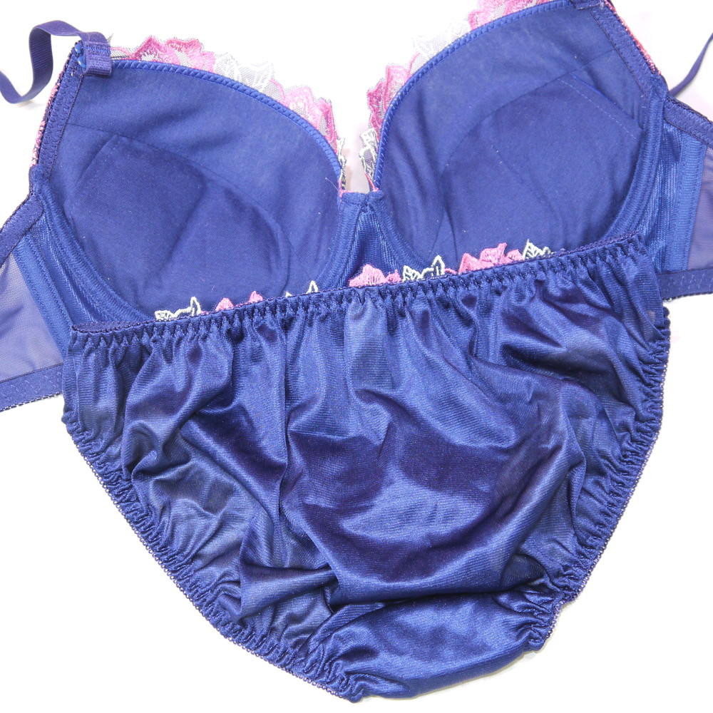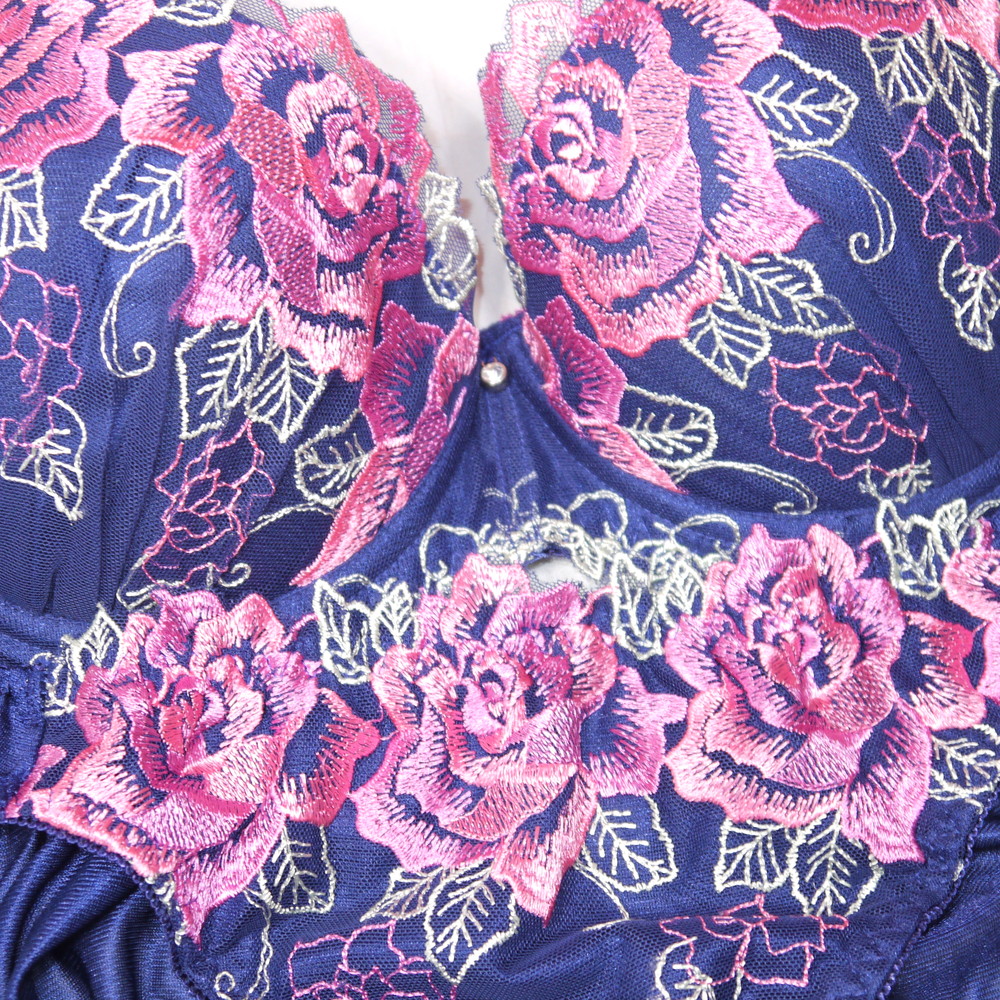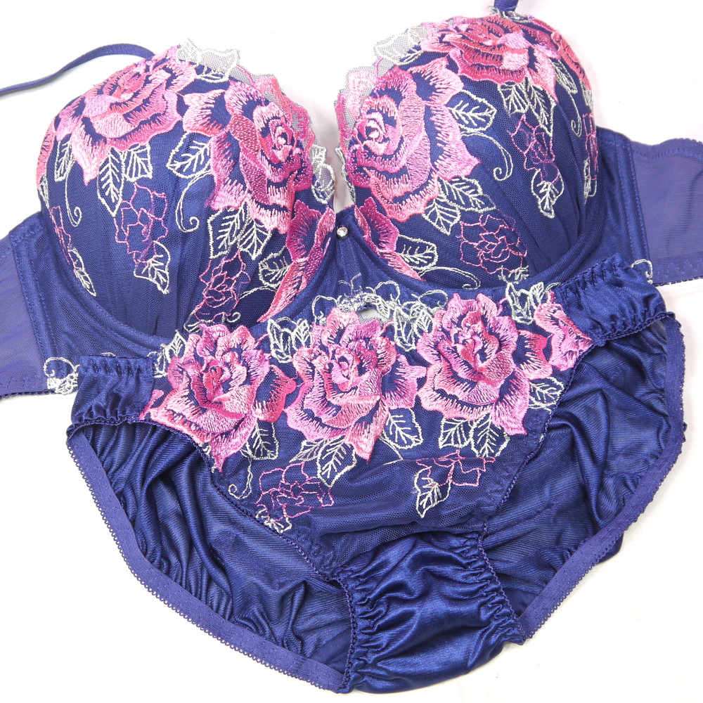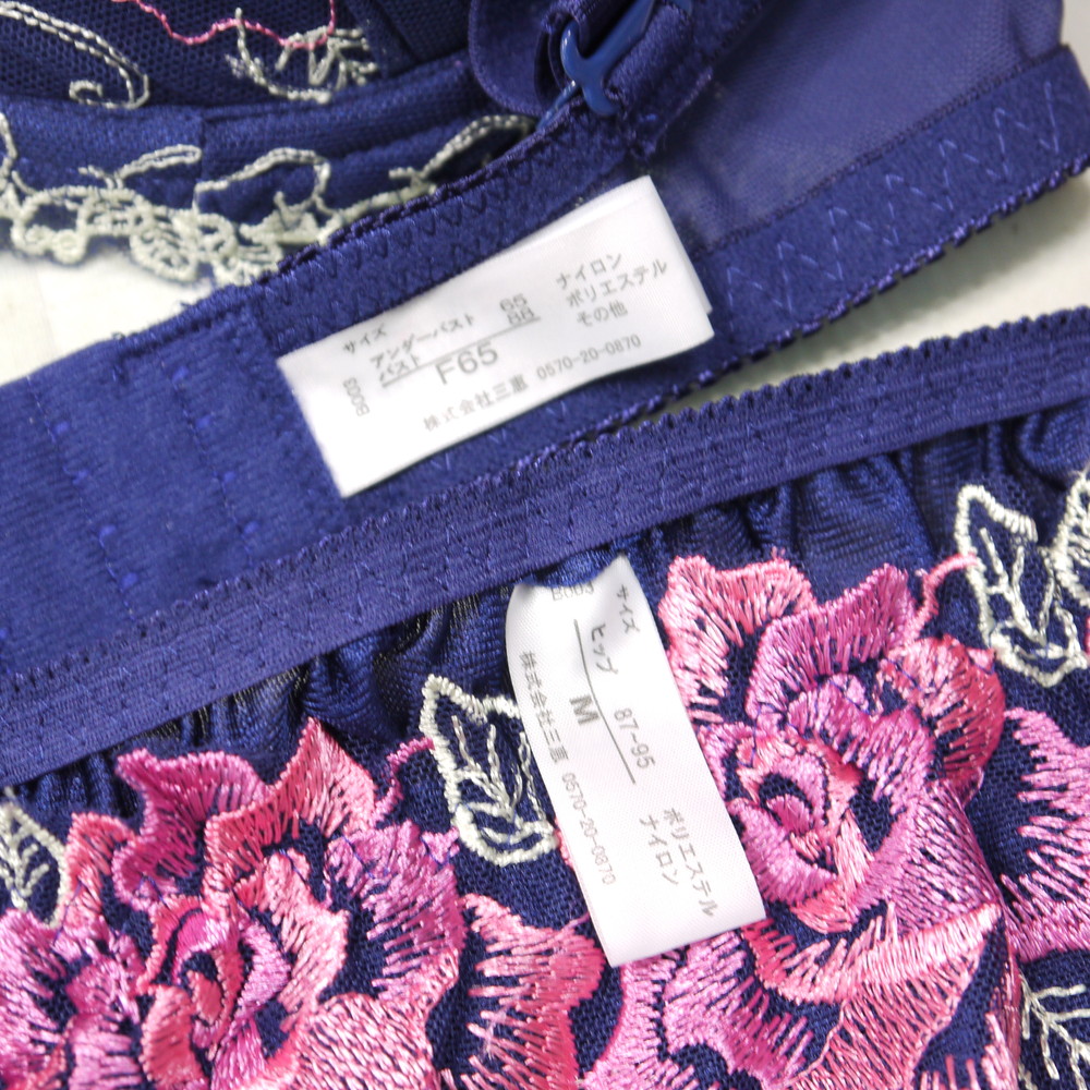 【Bランク/新古美品】三恵:F65*88 Mサイズ ★ 高級感が凄い大輪薔薇刺繍 艶ネイビー 爆乳 PBセット
