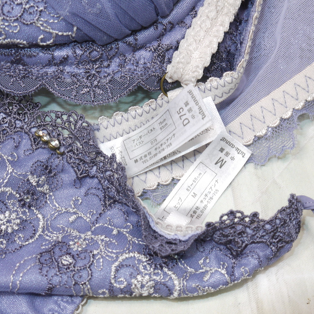 【BCランク/K43-】チュチュアンナ:D75*93 Mサイズ ★ ヴィンテージブルー×シャンデリア風レース刺繍 紐パン PBセット