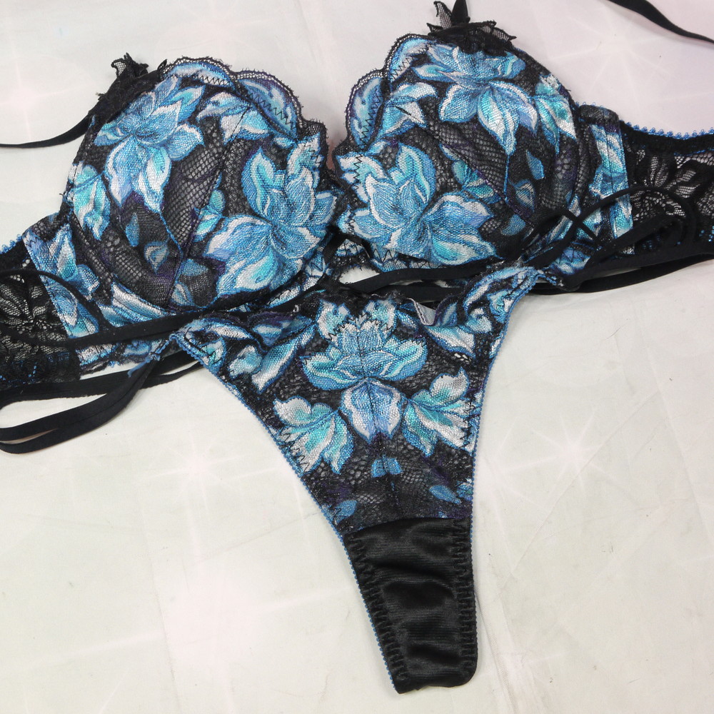 【BCランク/K43ー】RAVIJOUR:C65*80 MLサイズ程度 ★ ラヴィ!お姉ギャル系に黒ランジェ 花々レース刺繍 T PBセット