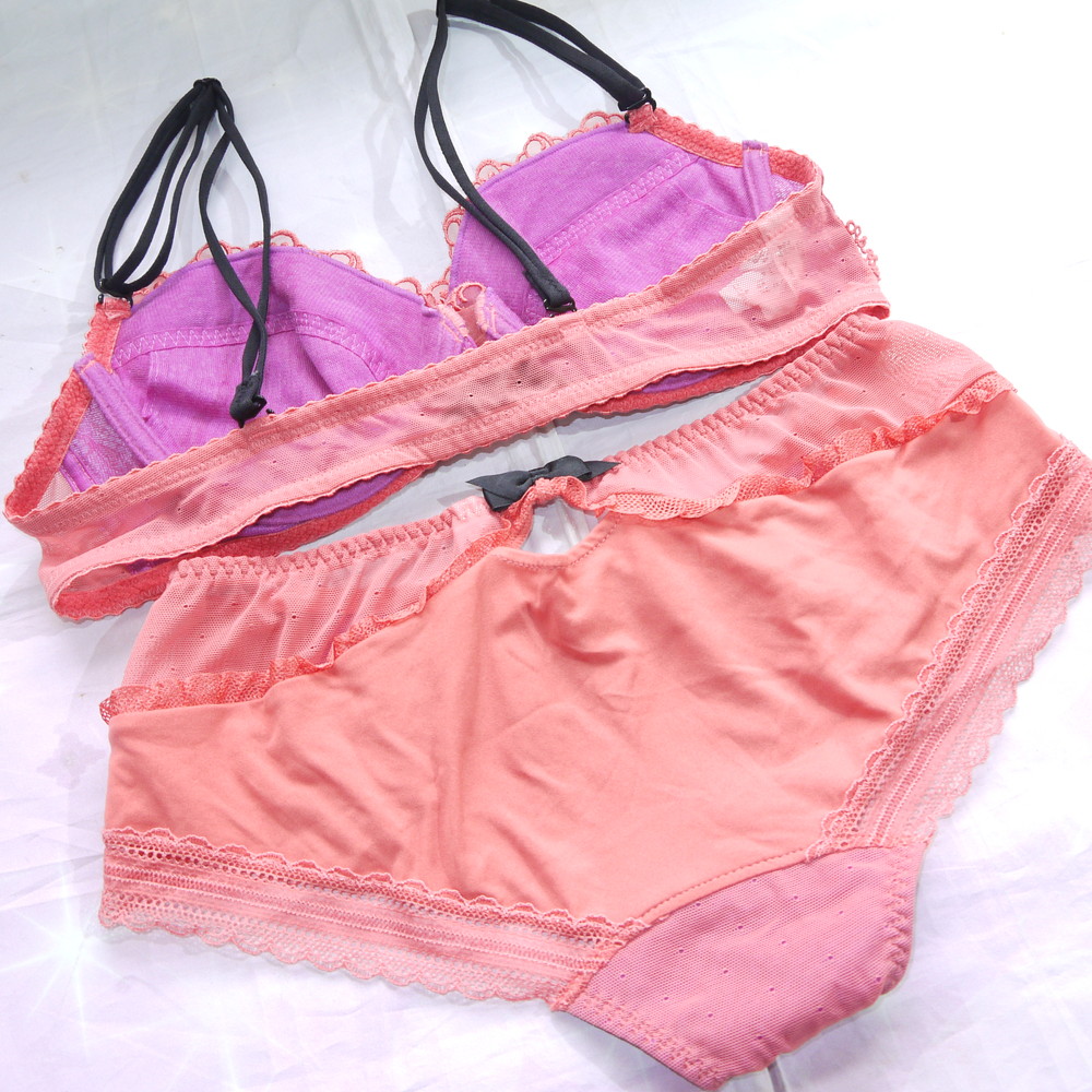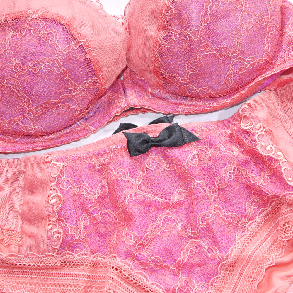 【Bランク/新古美品】ワコール:C75*90 Mサイズ ★ AMPHI!ヴィンテージサーモン×レース お嬢様感UP PBセット
