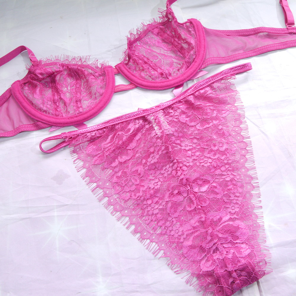 【Bランク/新古美品】C75*90 Lサイズ ★ ド派手ピンク×ALL透けSEXY ハーフT 痴女感ナイトランジェ PBセット