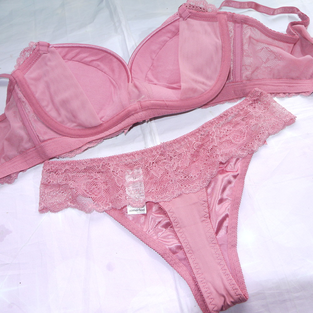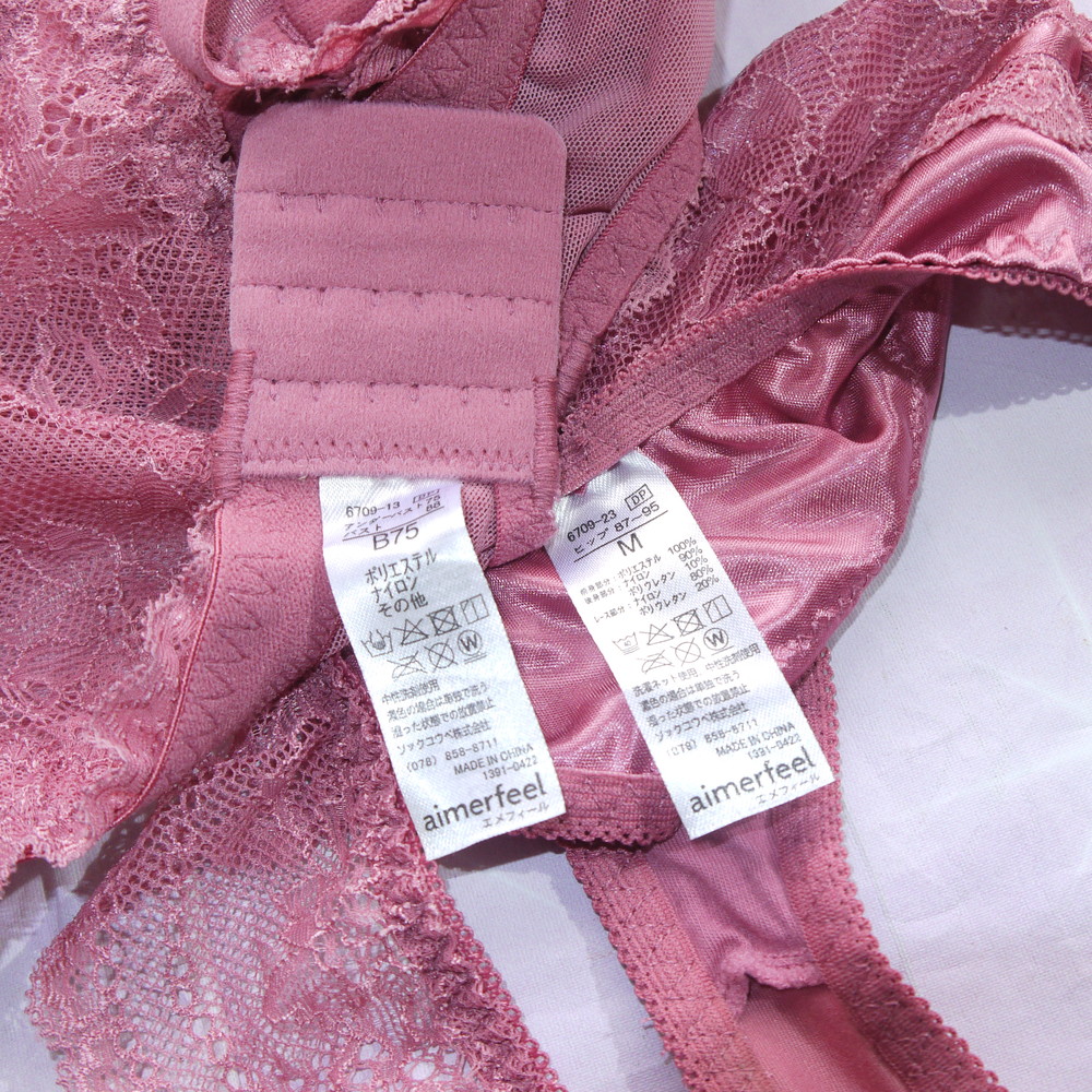 【Bランク/新古美品】エメフィール:B75*88 Mサイズ ★ 艶っとシルク調のヴィンテージピンク レース T PBセット キャバ系?