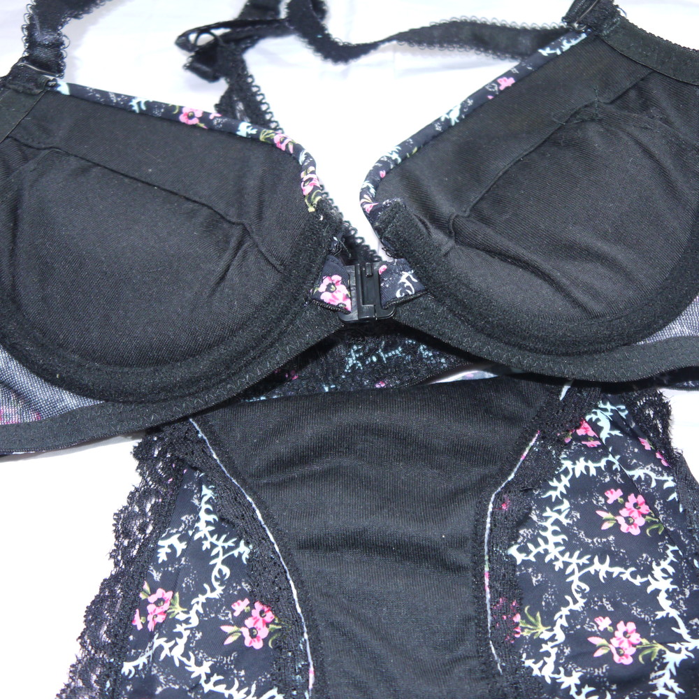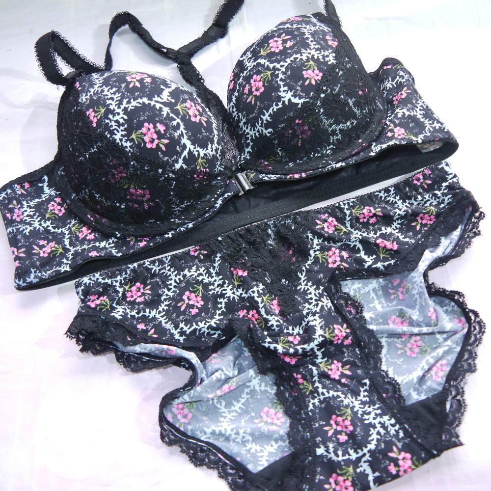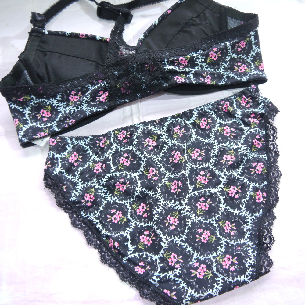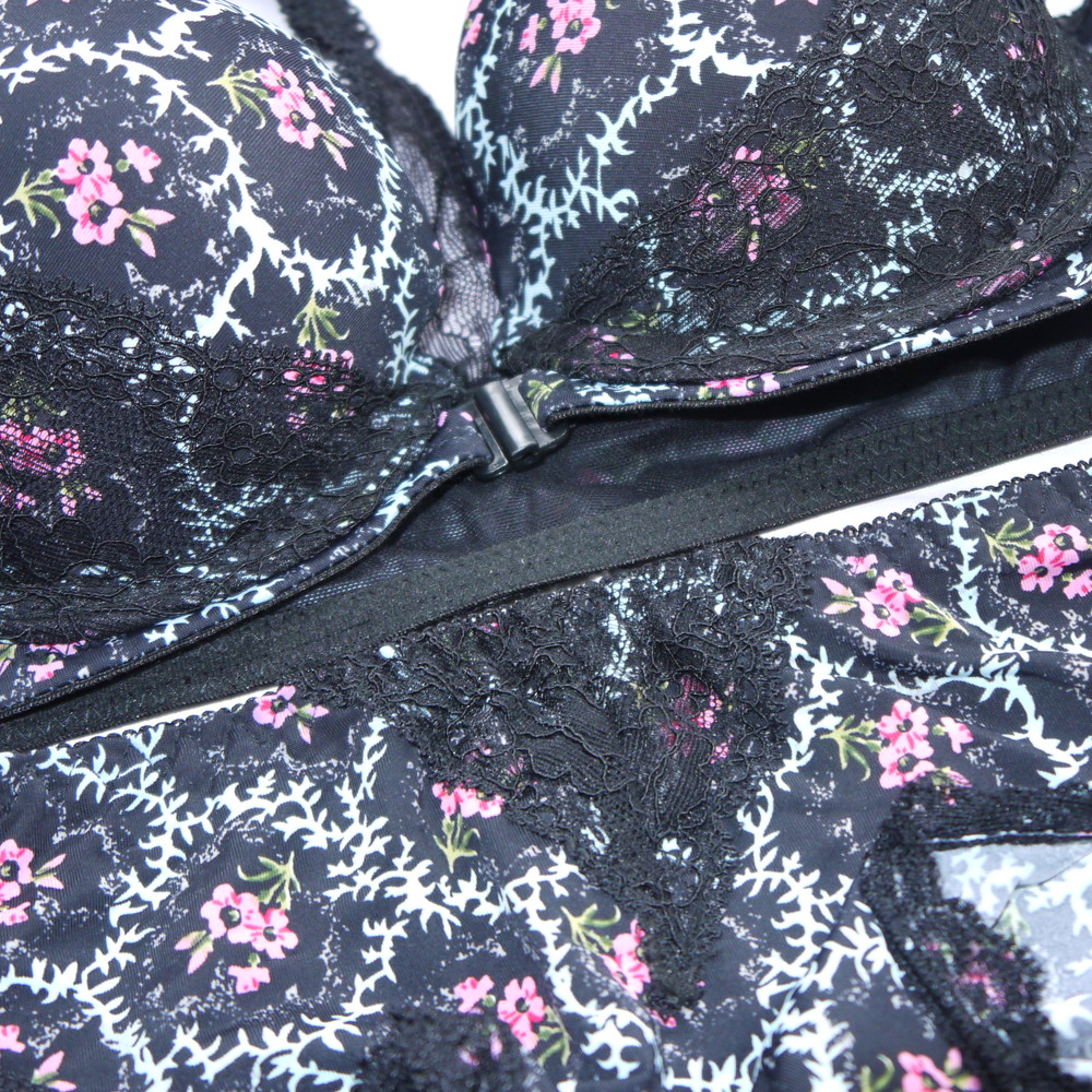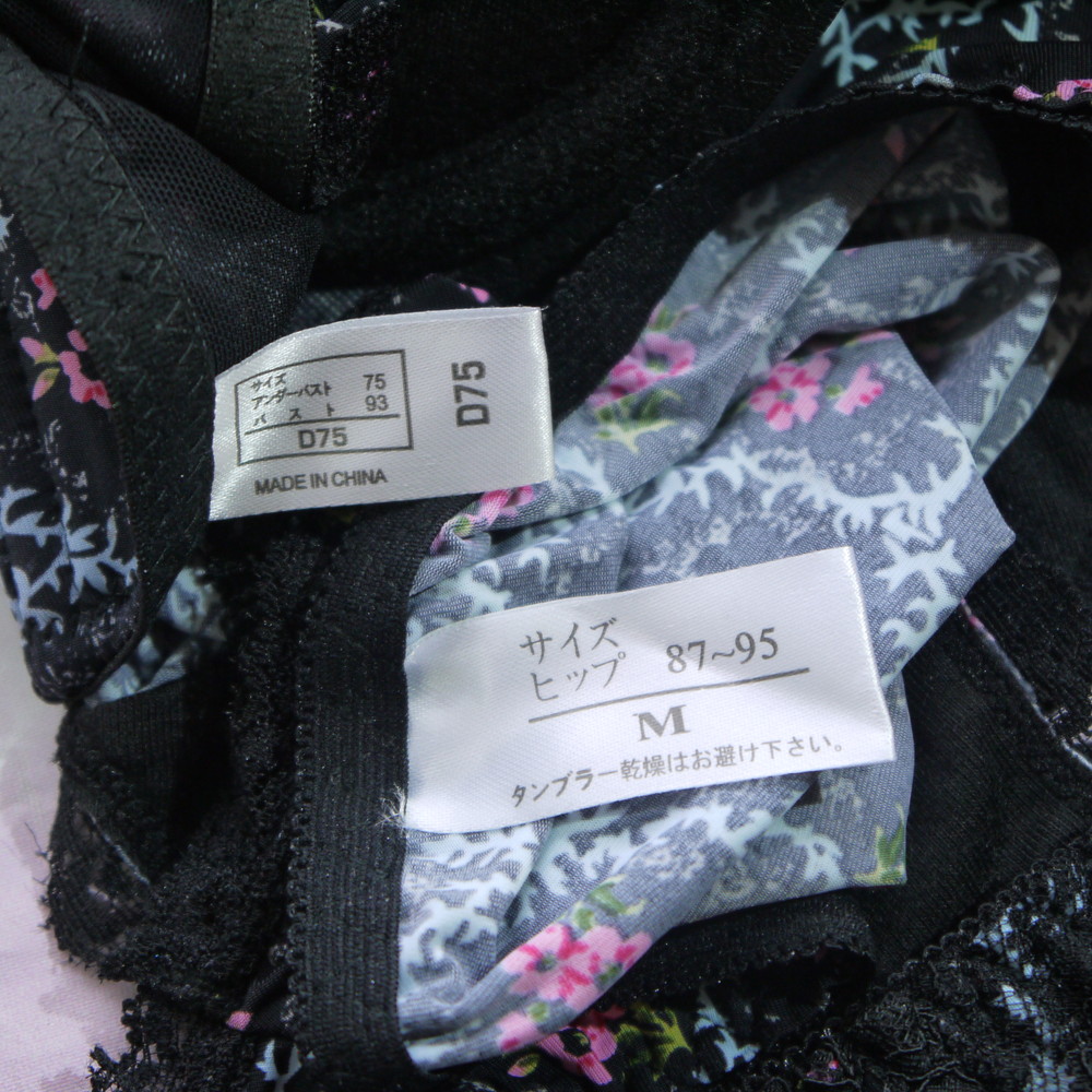 【Bランク/新古美品】niji:D75*93 Mサイズ ★ ヴィンテージ×黒・小花 希少Yバック ギャル系 PBセット
