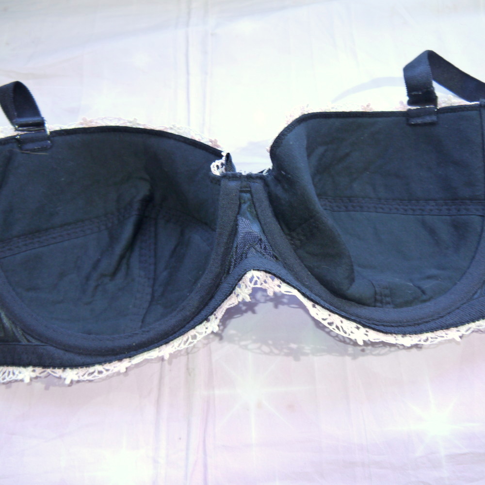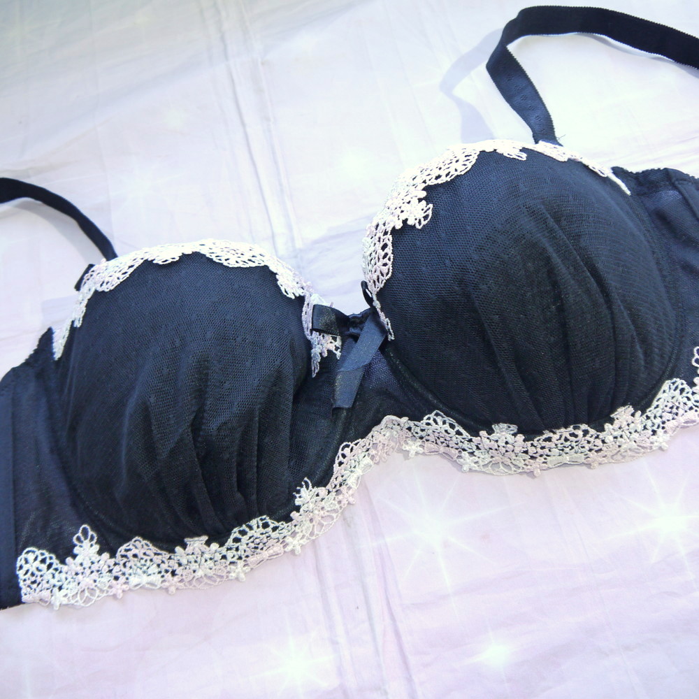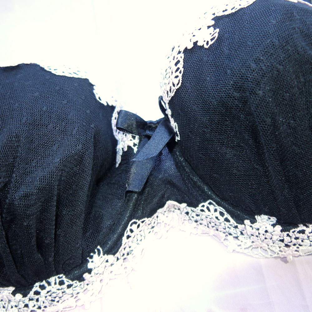 【Bランク/新古美品】しまむら:E85*105 ★ ロリッと可愛いJCJK系? ネイビー×白花レース 巨乳デカブラ 希少85