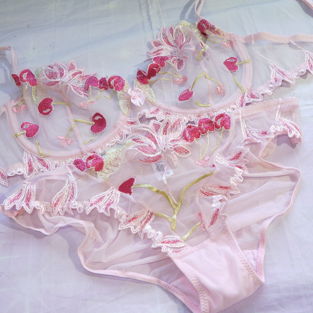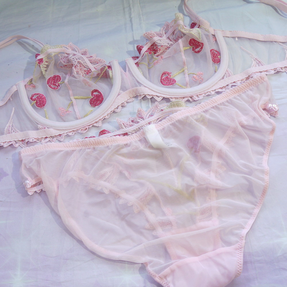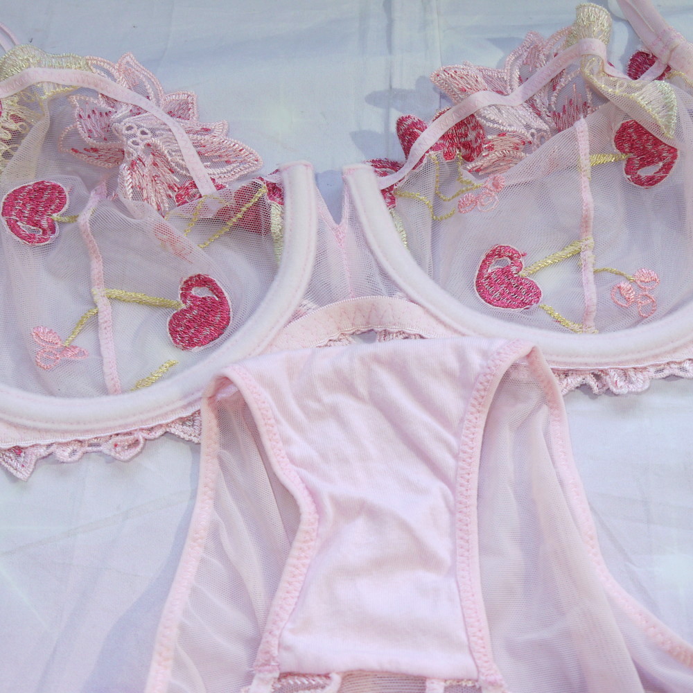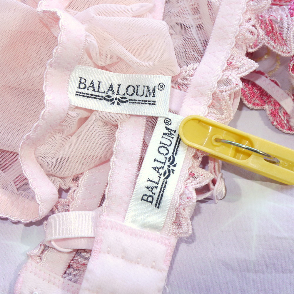 【Bランク/新古美品】BALALOUM:C85 L-LLサイズ程度 ★ 大人可愛いピンク×チェリー刺繍 ALL透けSEXY PBセット