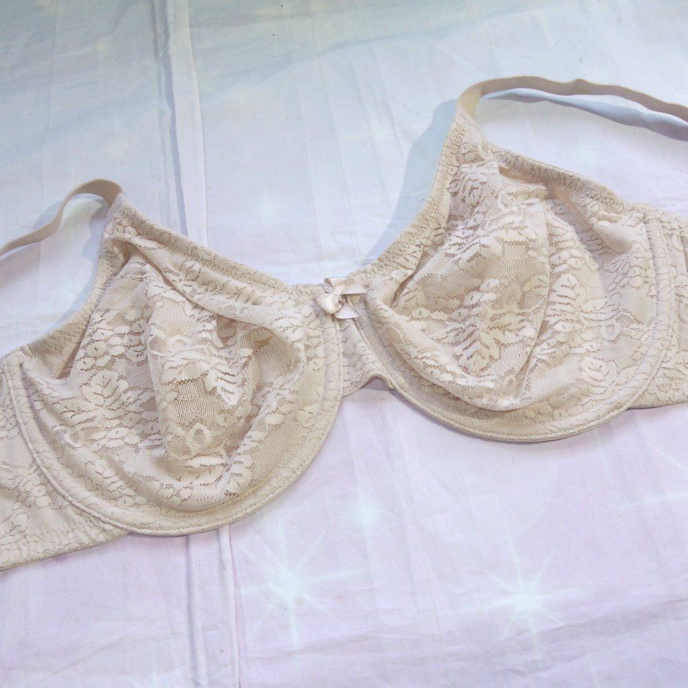 【Bランク/新古美品】EFカップ程 ★ 大人ベージュ×透けレース 爆乳デカブラ