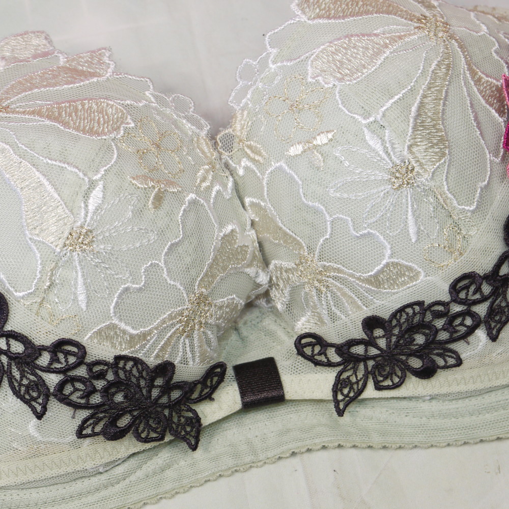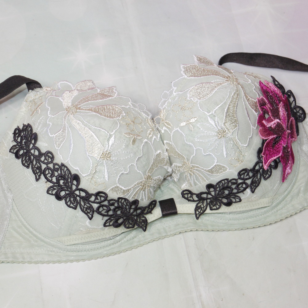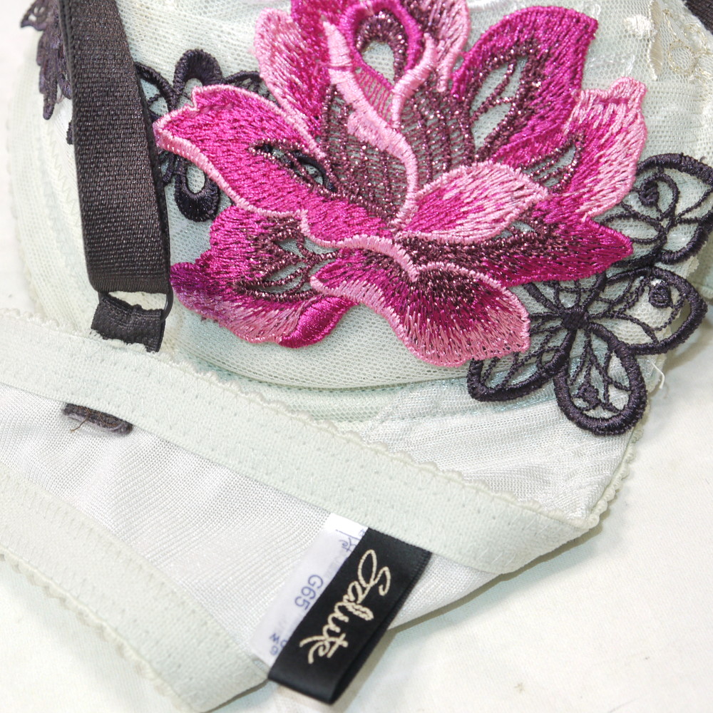 【Bランク/新古美品】サルート 96G:G65*90 ★ ジャーナリズム!清楚感淡グリーン 大輪花刺繍 デカブラ