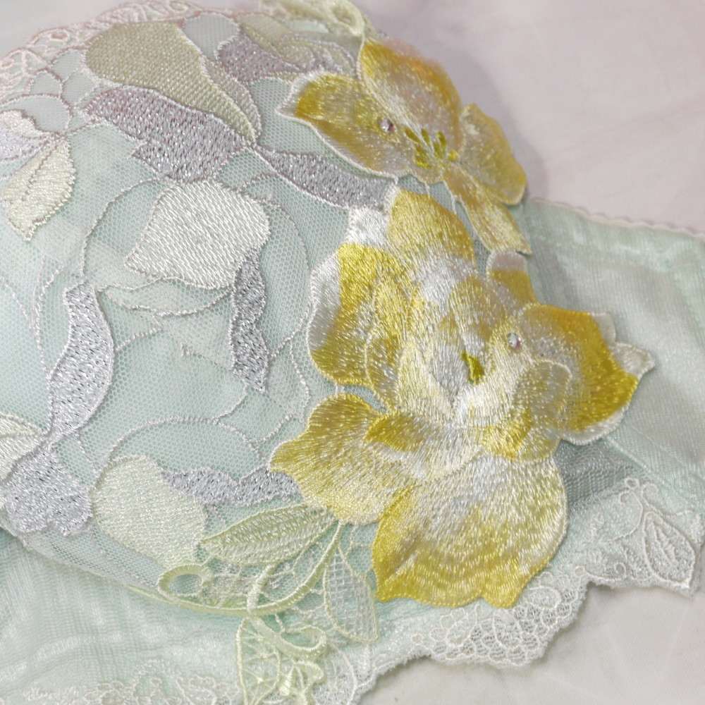 【Bランク/新古美品】サルート 56G:G65*90 ★ ベルエポック!清楚感が凄いミントカラー 黄薔薇アップリケ KIRAスワロフ デカブラ
