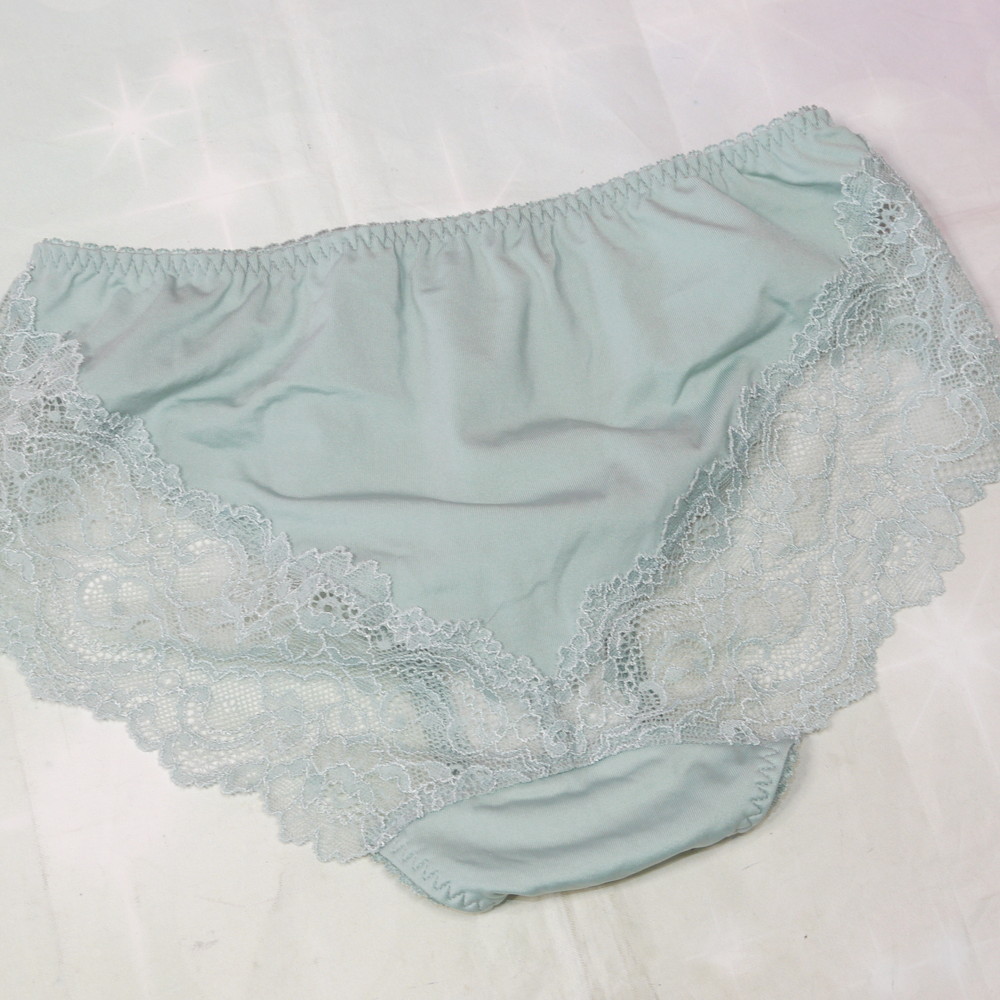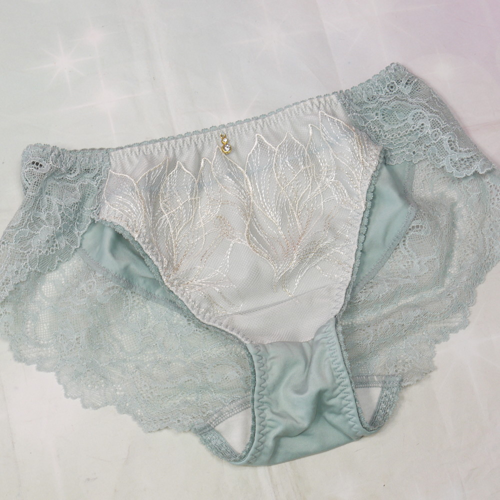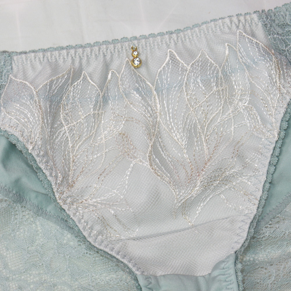 【Bランク/新古美品】ワコール:Mサイズ ★ AMPHI!ヴィンテージグリーン×リーフ 透尻 お嬢様系パンティ