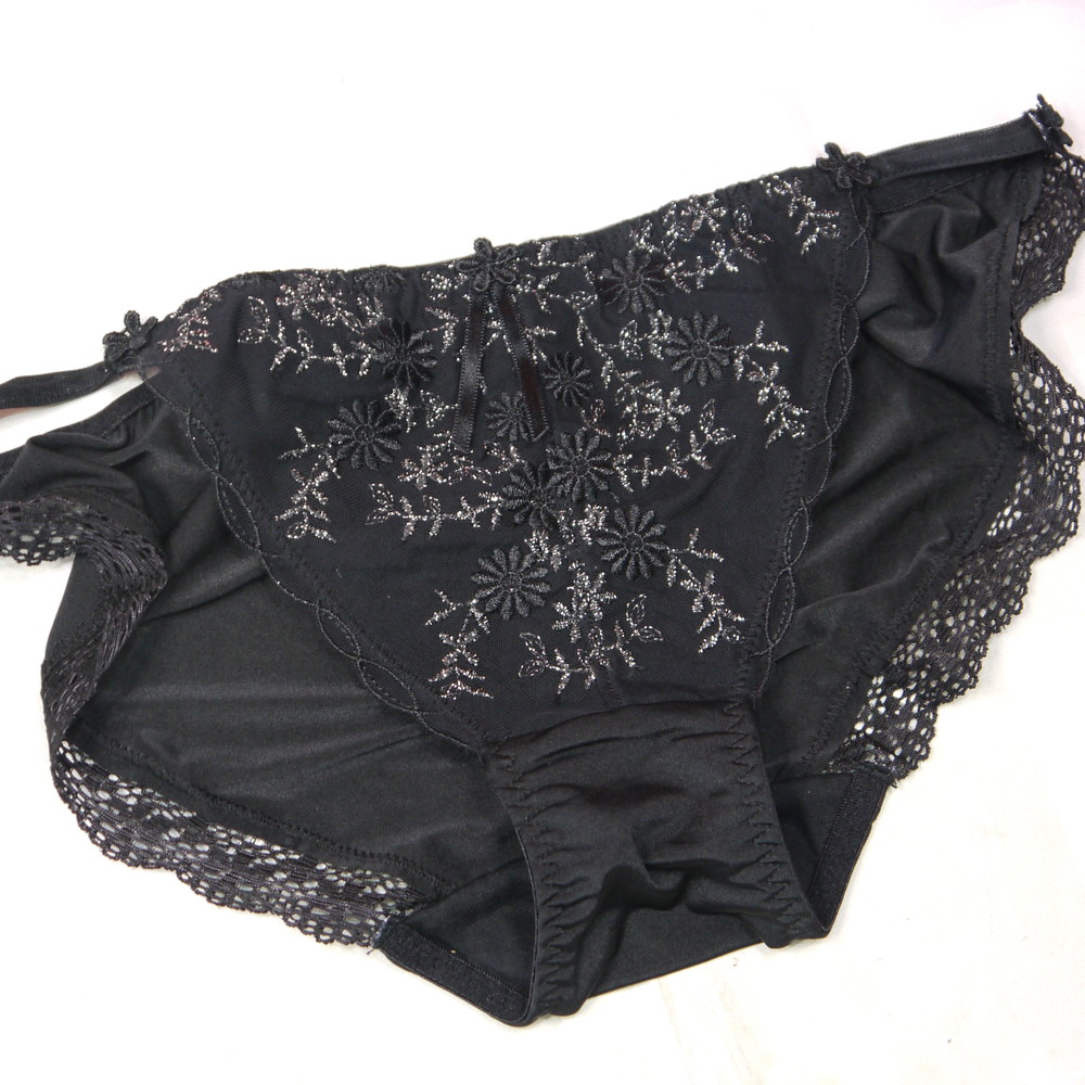 【ABランク/未使用?】MLサイズ程度 ★ 大人可愛い黒×ラメ花刺繍 パンティ