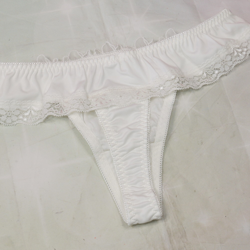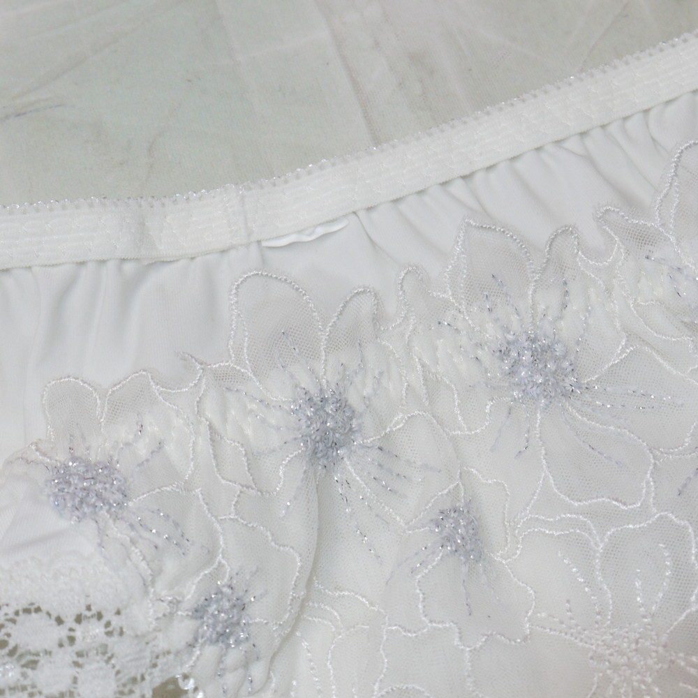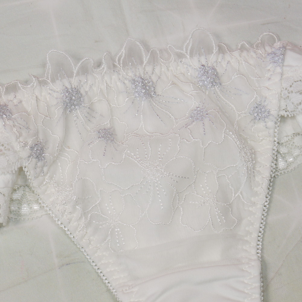 【ABランク/未使用?】MLサイズ程度 ★ リサマリ?清楚感白 花刺繍レース グイっと食い込み パンティ T