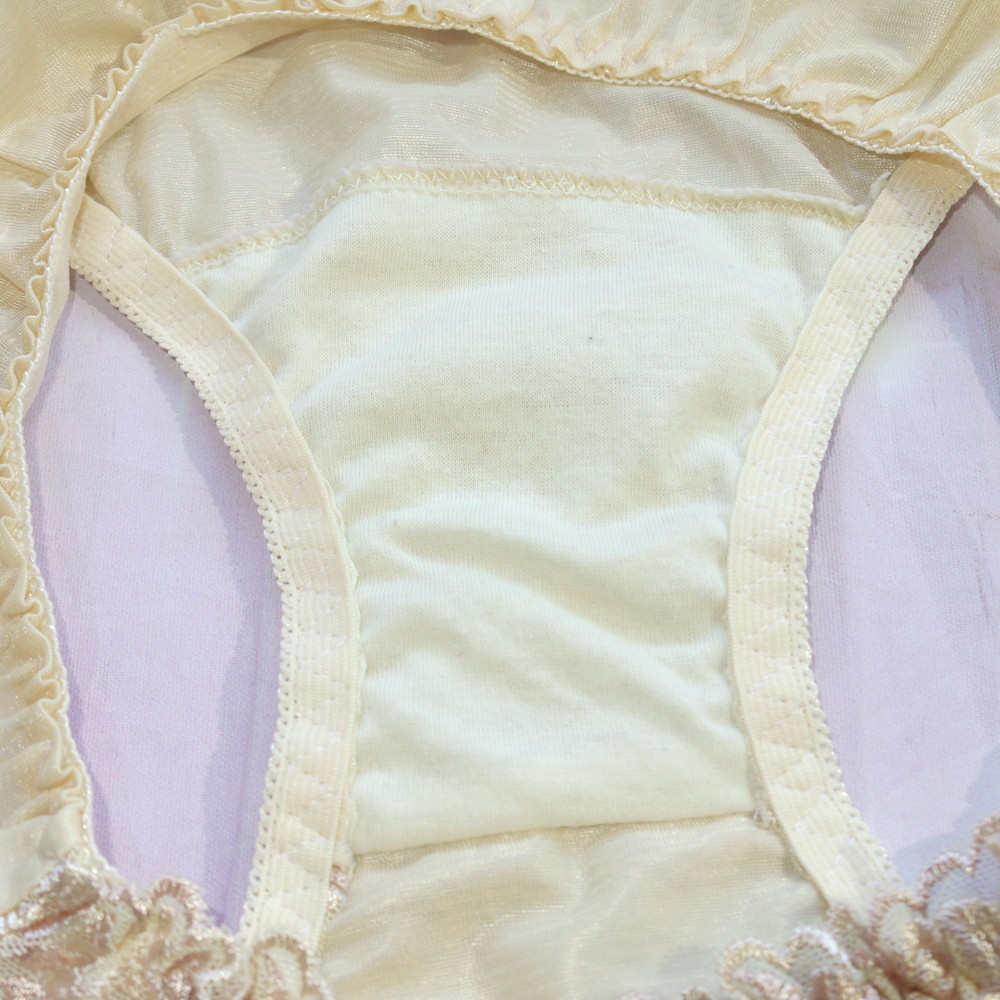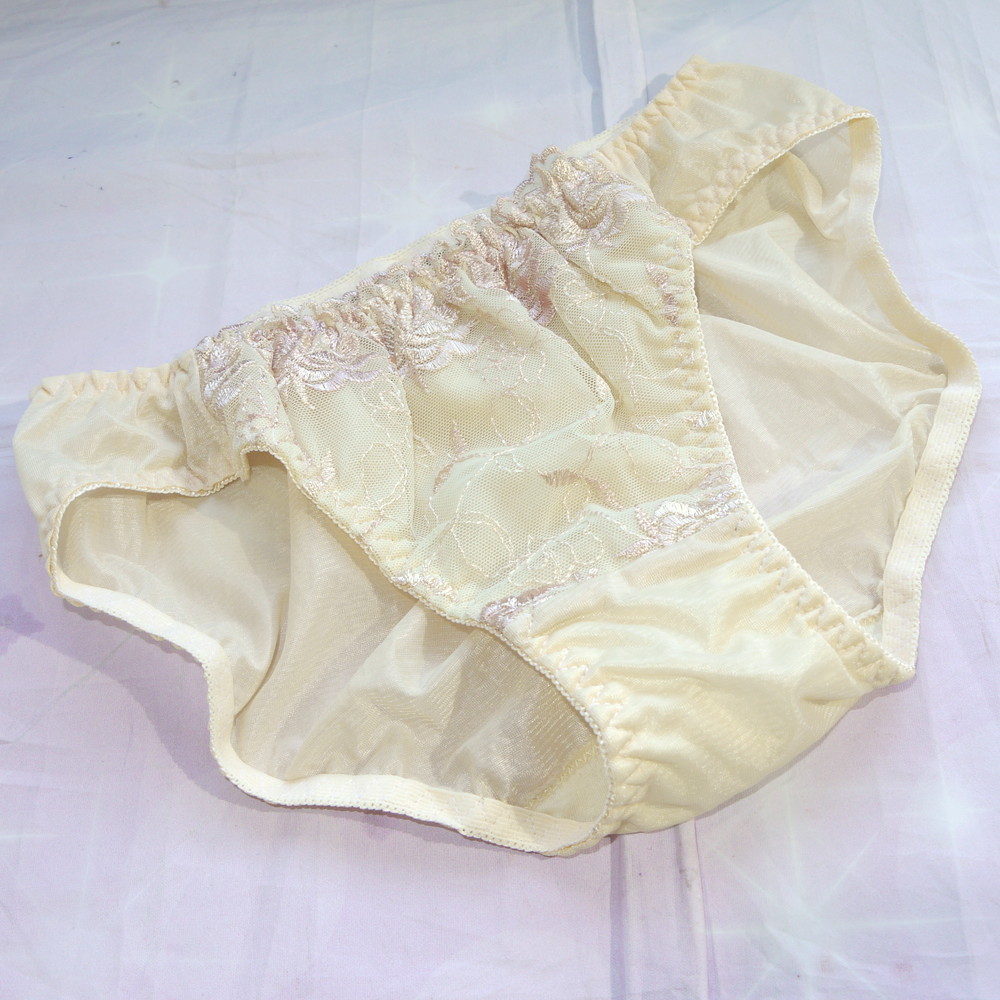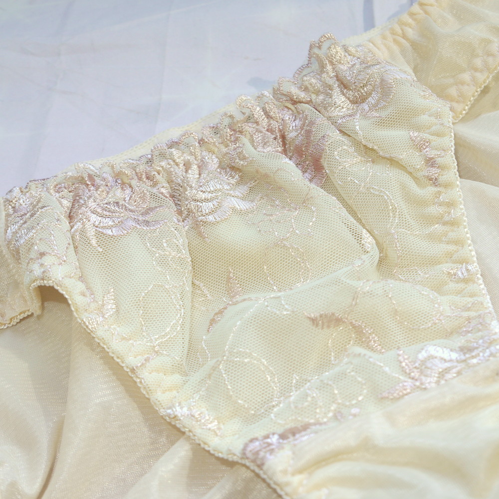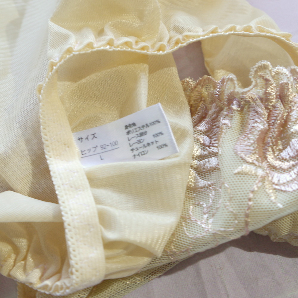 【Bランク/新古美品】関西ファッション:Lサイズ ★ 清楚感ライトイエロー×花刺繍 純粋ショーツ