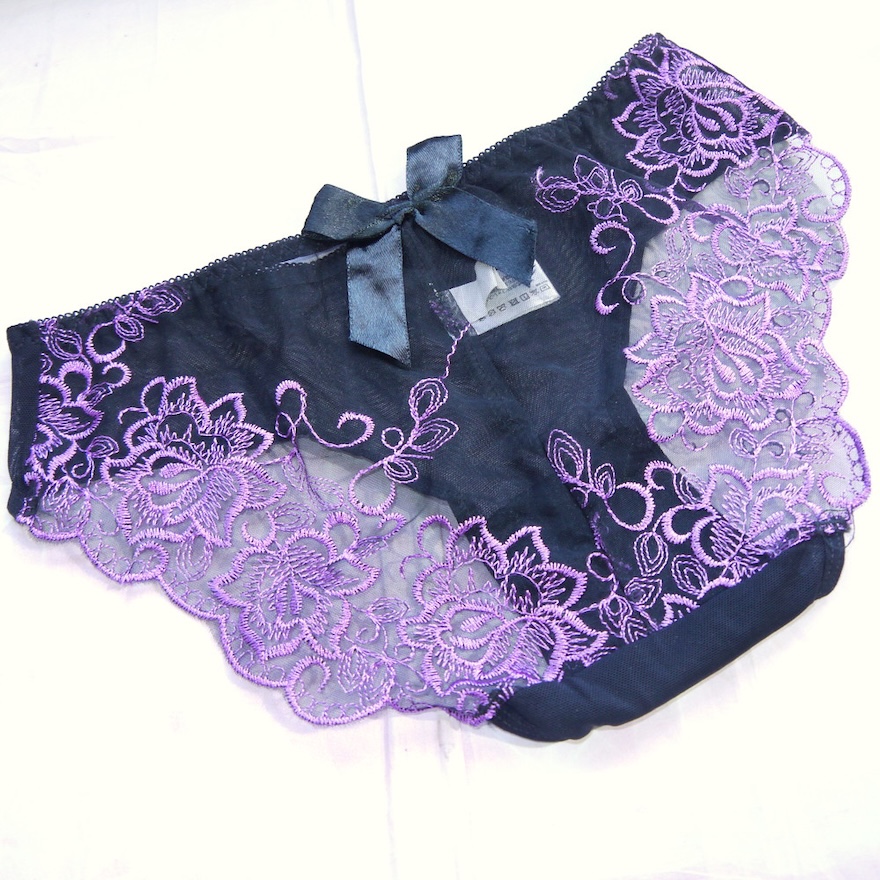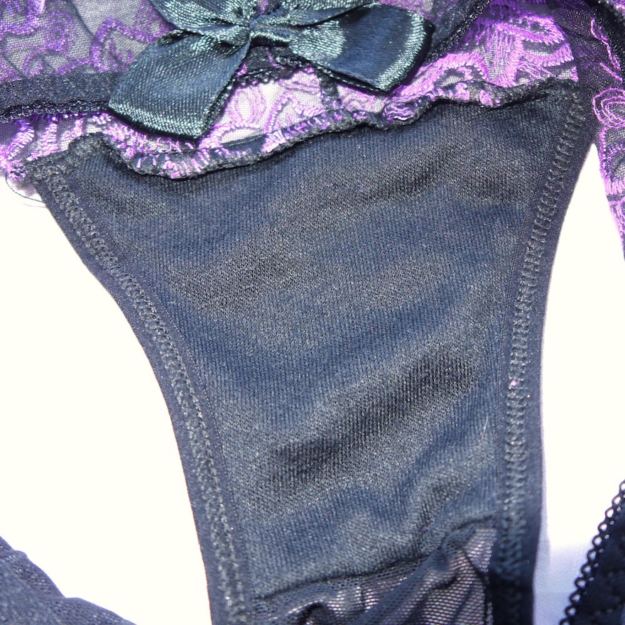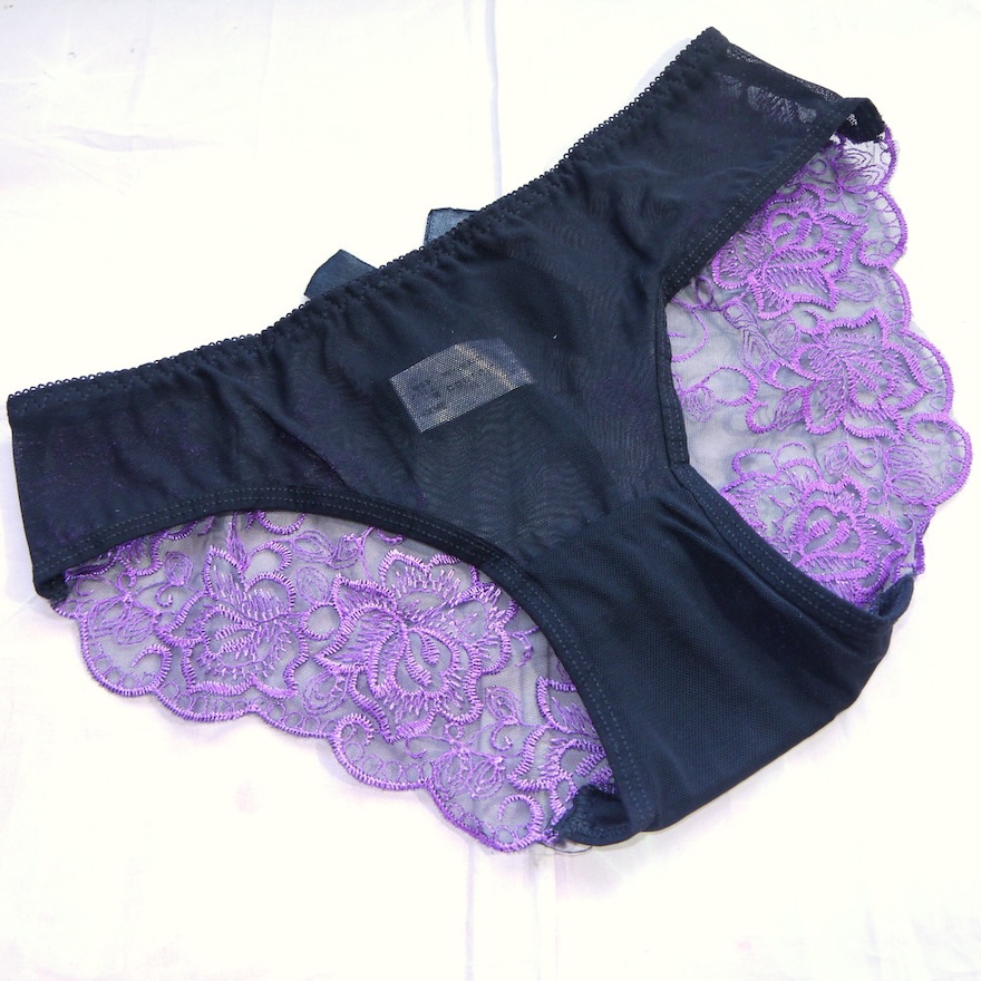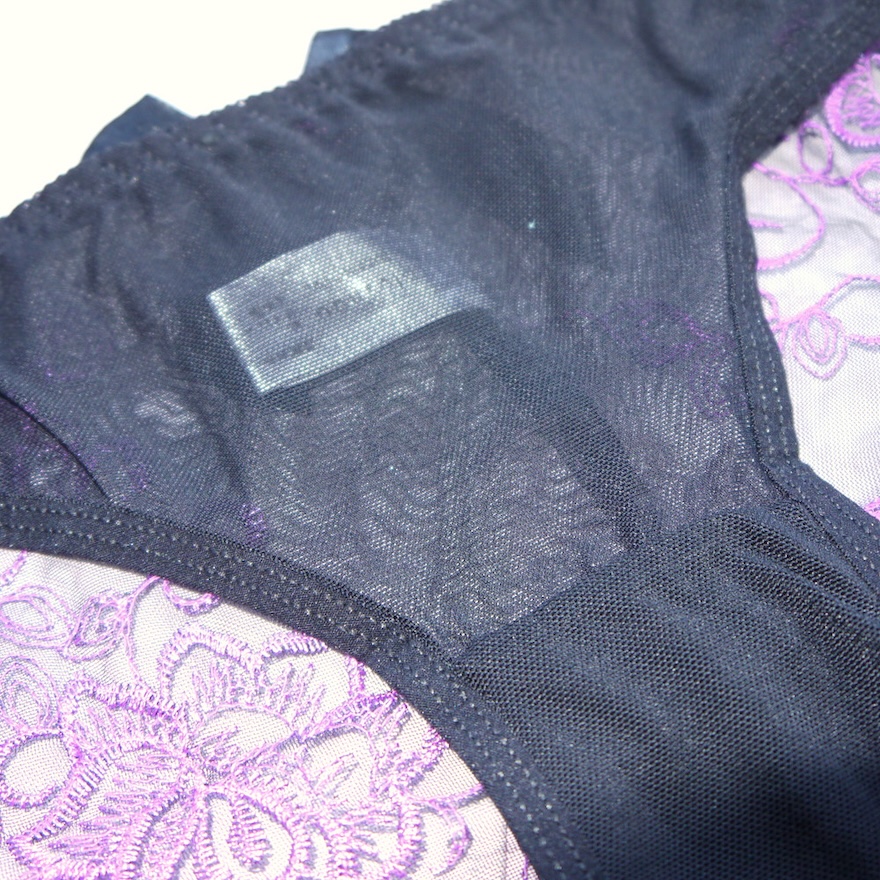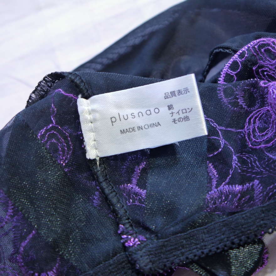 【Bランク/新古美品】plusnao:MLサイズ程度 ★ 妖艶紫レース×黒 ALL透けSEXY お姉様ショーツ