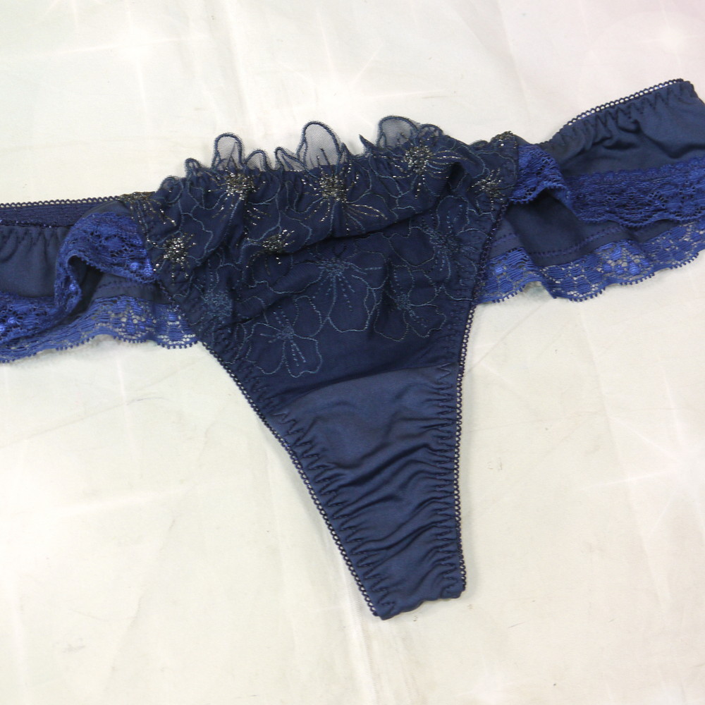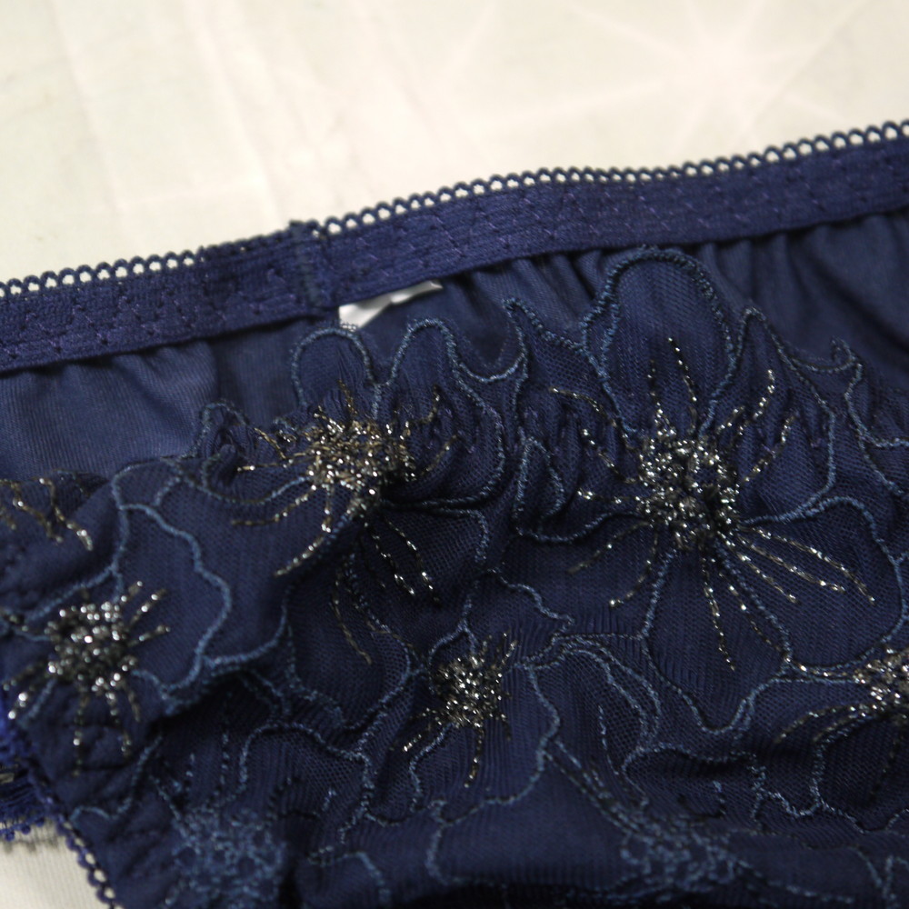 【Bランク/新古美品】ケーズウェイ?:MLサイズ程度 ★ リサマリ?ネイビー×ラメ花 濃紺 T