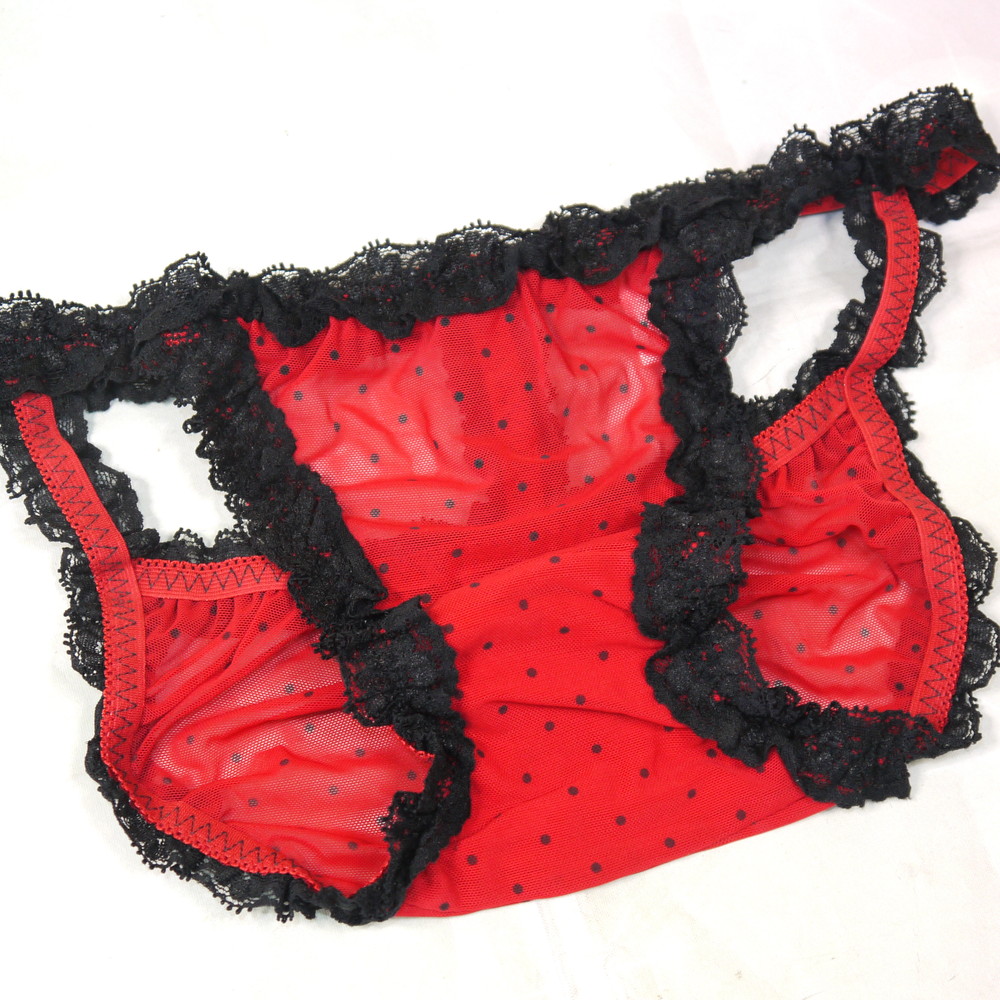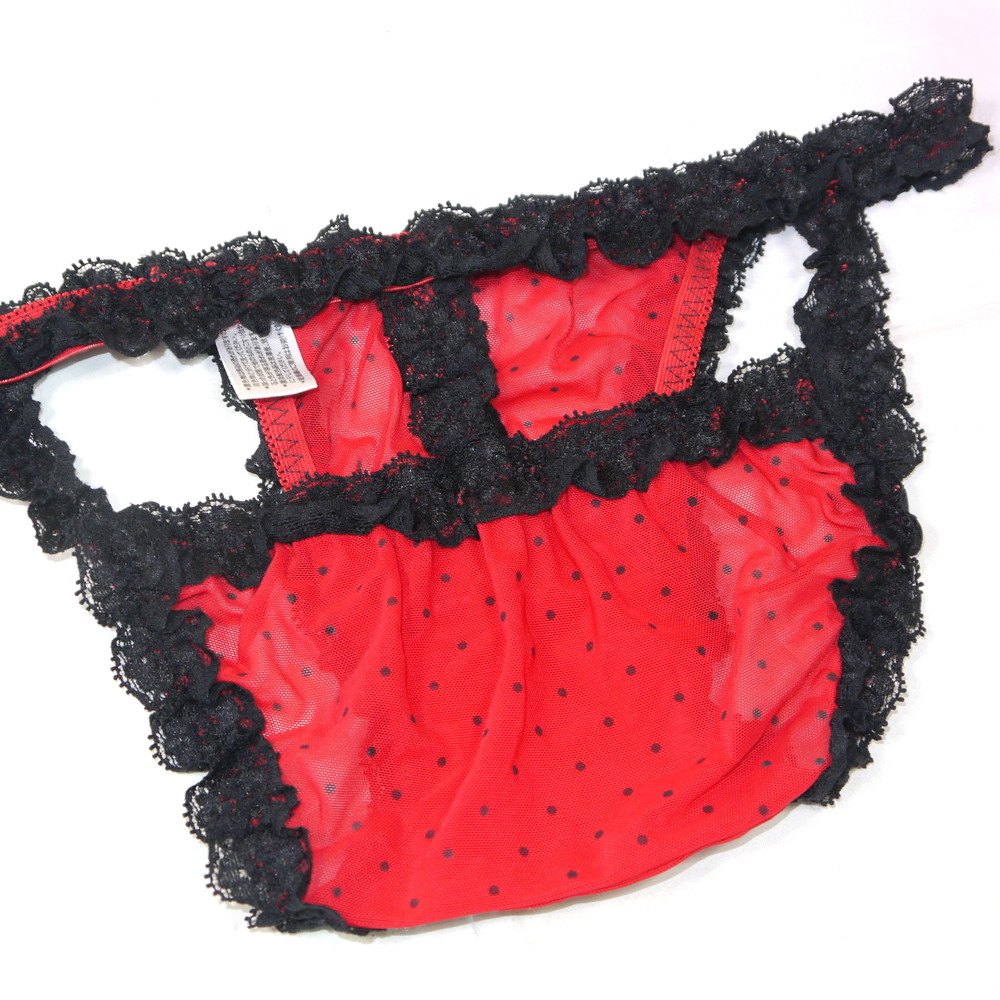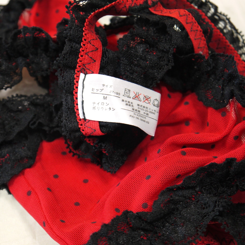 【Bランク/新古美品】ニッセン:Mサイズ ★ 背部激エロ系の可愛い赤黒 ドット 小悪魔系ナイトパンティ