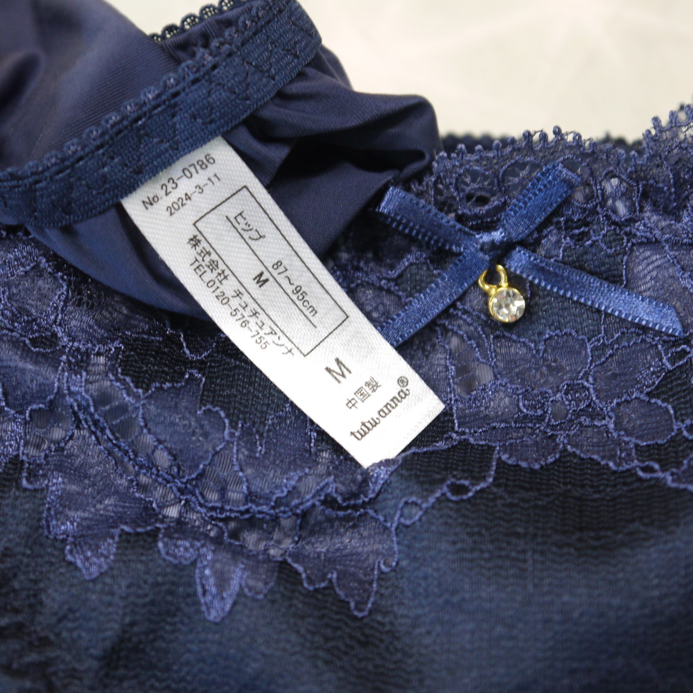 【Bランク/新古美品】チュチュアンナ:Mサイズ ★ 高級感と大人度UP ネイビー 花レース刺繍 ショーツ