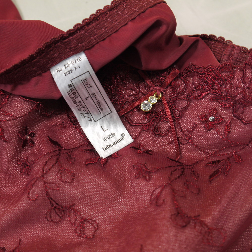 【BCランク/K43ー】チュチュアンナ:Lサイズ ★ 大人度UPのボルドー 花刺繍 薄手フィット ショーツ