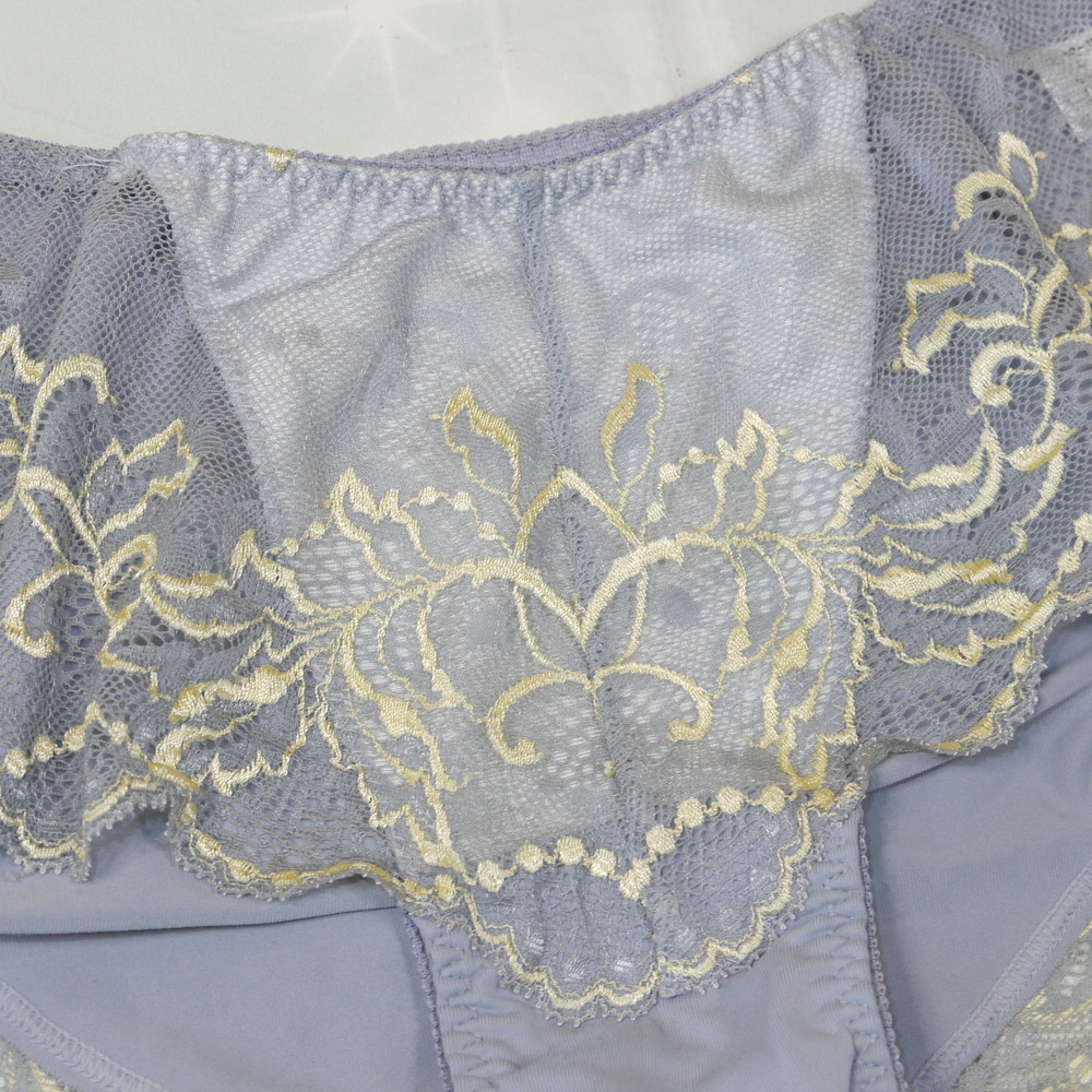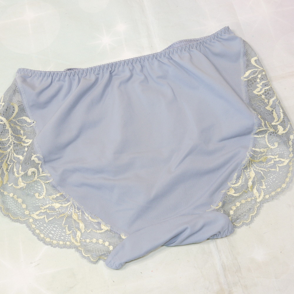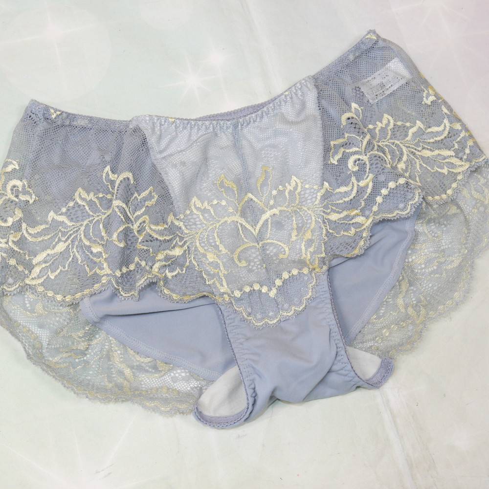【Bランク/新古美品】Exabra:Lサイズ ★ 透かしレースがエレガンス ヴィンテージブルー マダム系ショーツ