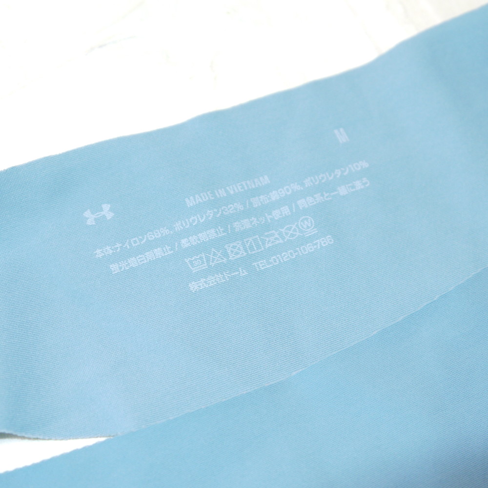 【BCランク/K43ー】アンダーアーマー:Mサイズ ★ 水色×シンプル 薄手ツルピタ OL・ジム・ヨガ スポーツT