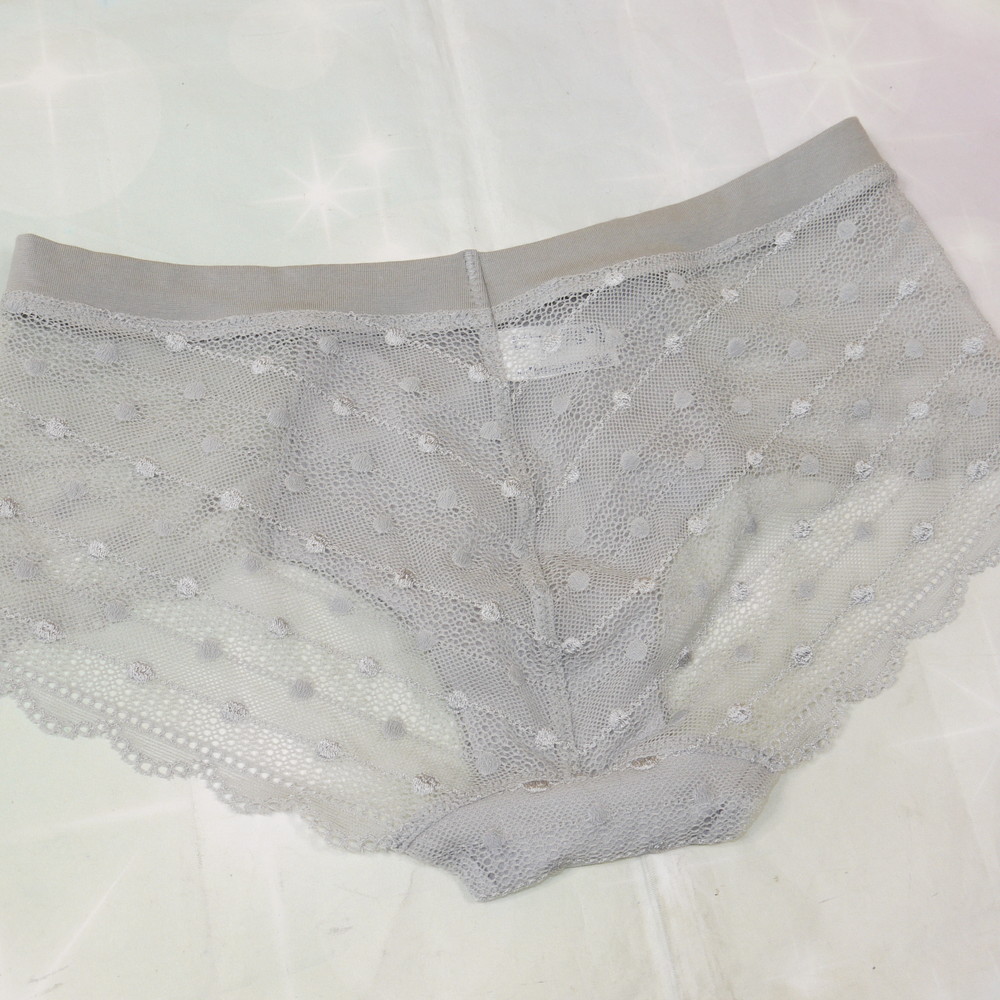 【Bランク/新古美品】ワコール:Mサイズ ★ ウンナナ!お嬢様系のグレー×ドット生地 透けSEXY ショーツ