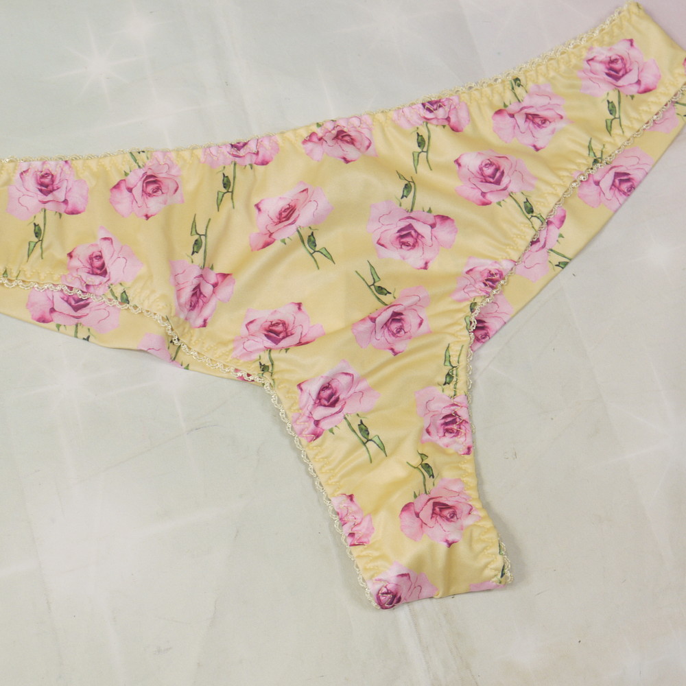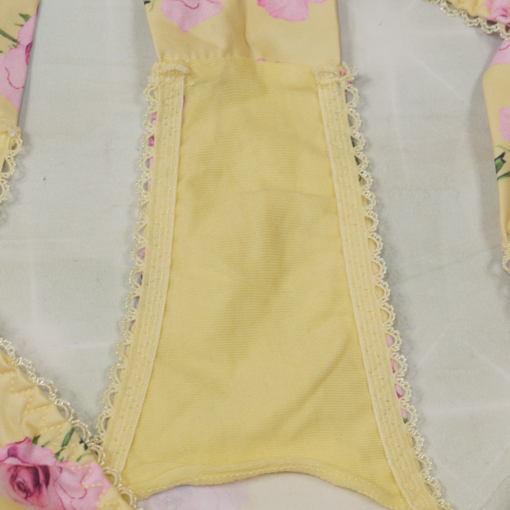 【Bランク/新古美品】SEeLEI:36(L-LLサイズ程度) ★ お嬢様なイエロー×薔薇プリント T