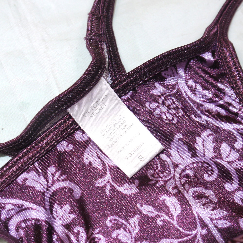 【BCランク】Victoria's Secret:S(MLサイズ程度) ★ 高級感ムンムンの紫×リーフ柄 激細 T