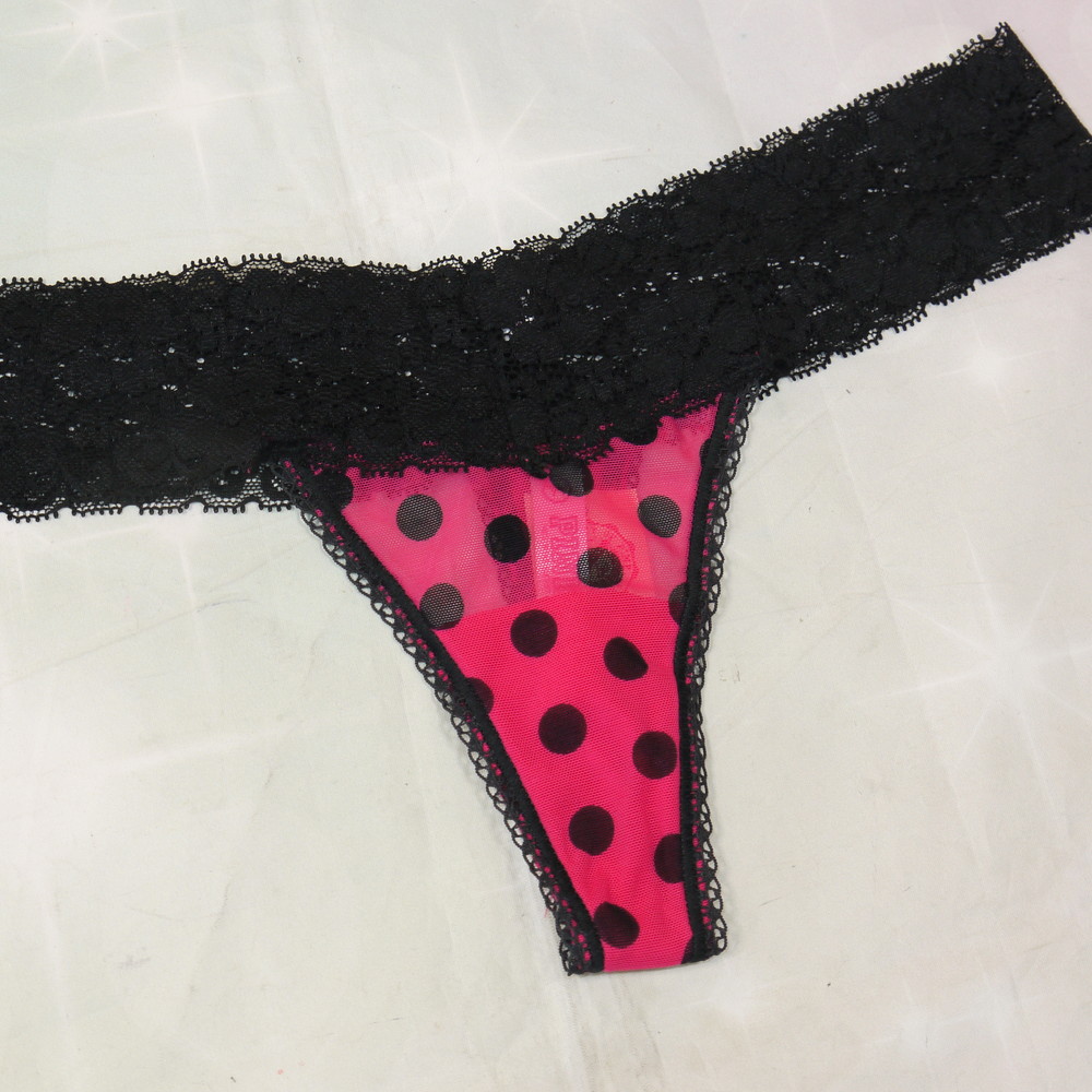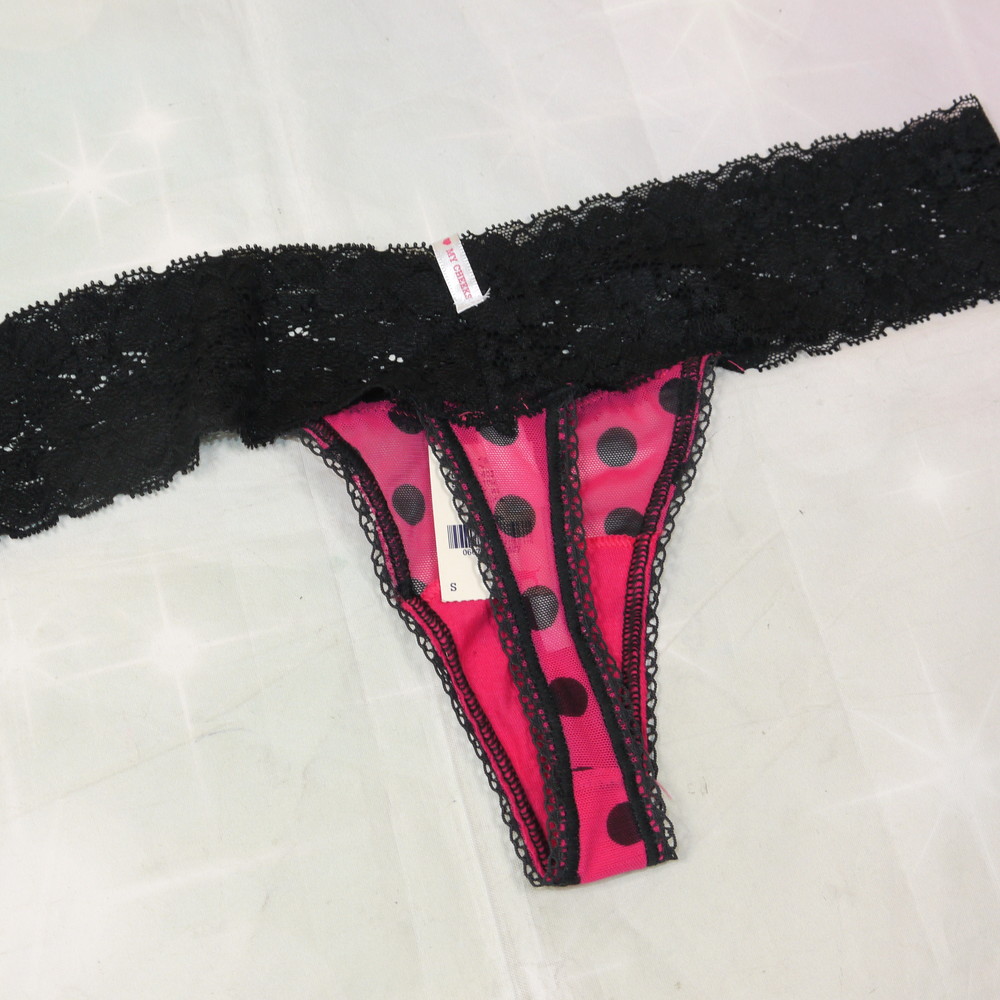 【Sランク/タグ付】Victoria's Secret:S(MLサイズ程度) ★ PINK!ド派手ピンク×デカ水玉 ギャルパンティ T