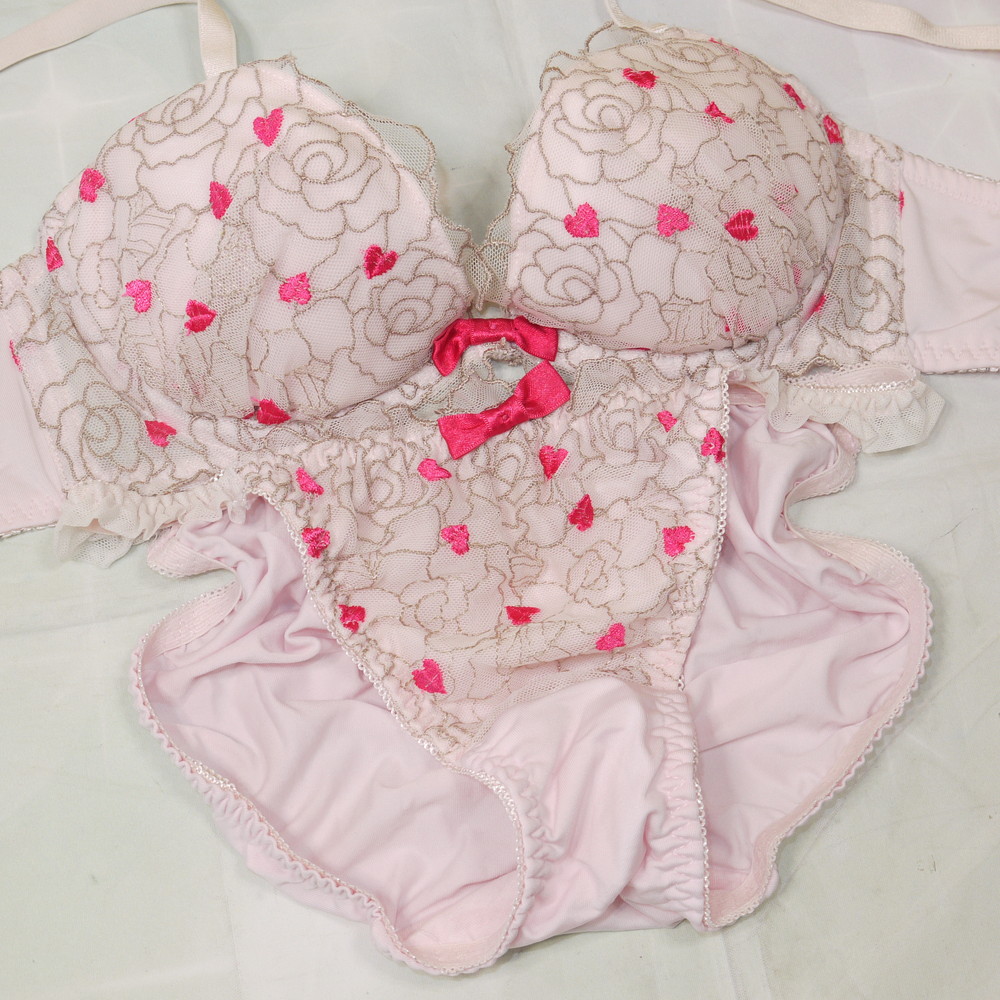 【BCランク/B43ー】アールビィ:B75*88 Mサイズ ★ 甘ピンク×ハート・薔薇レース刺繍 超絶可愛いPBセット ティーンズ系